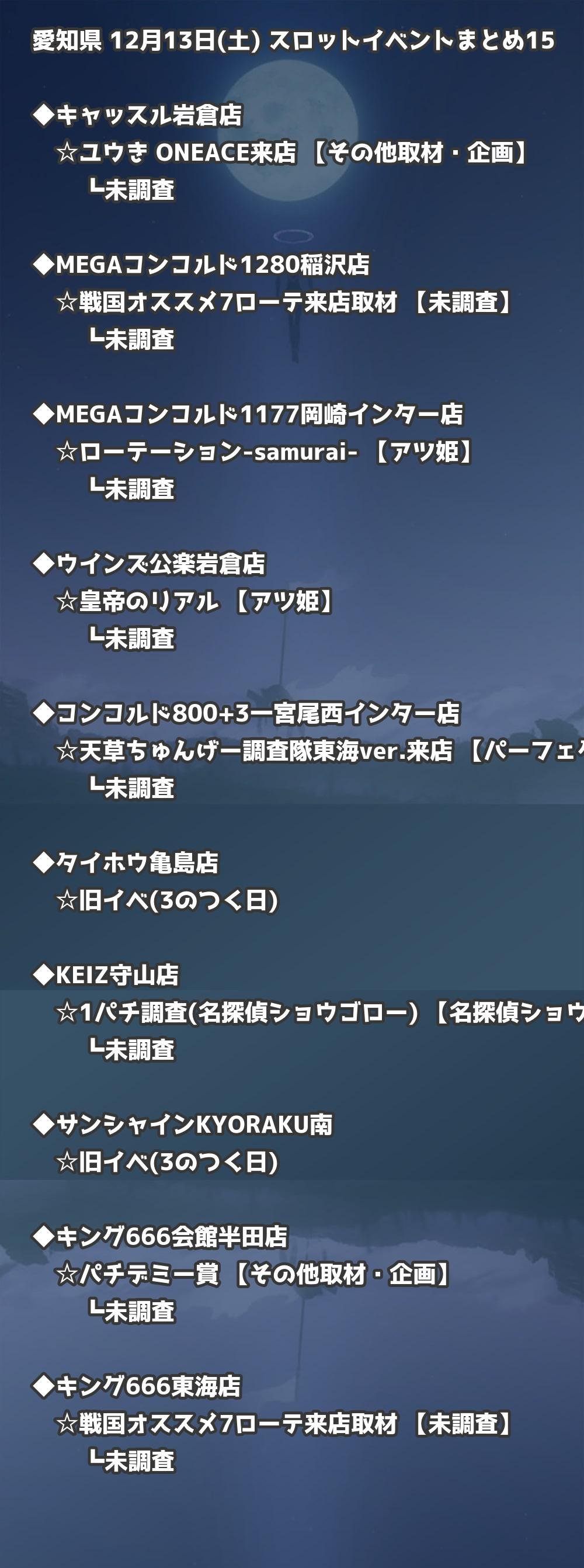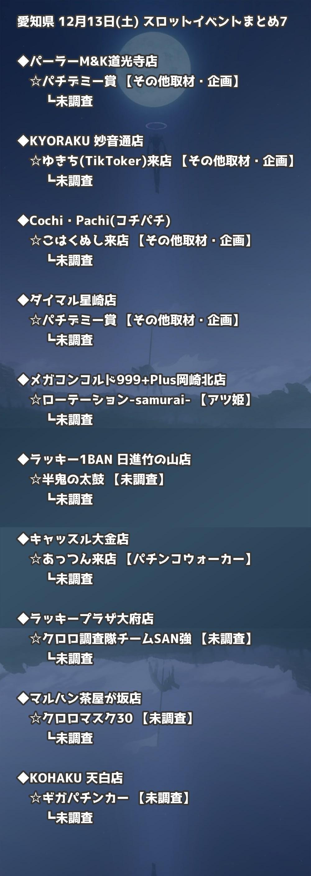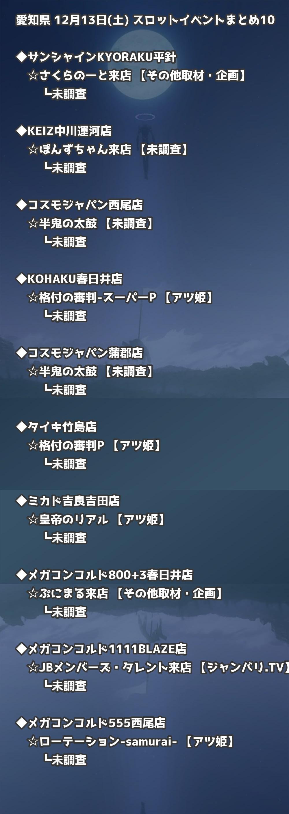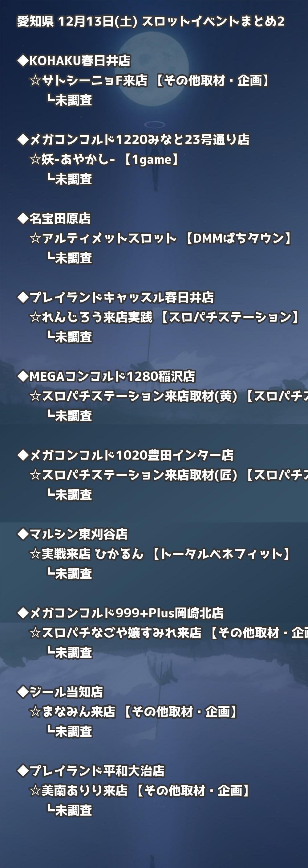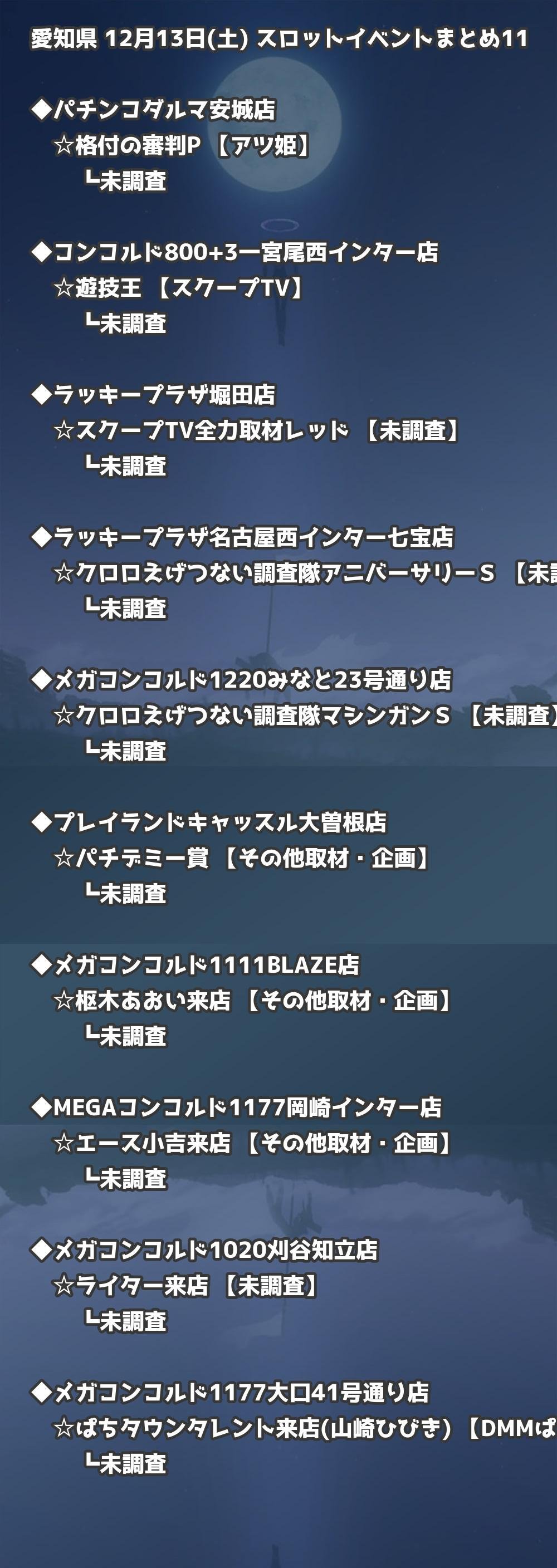📊 愛知県 12月13日(土) 勝てるパチンコ・スロット取材店舗一覧|おすすめ順
