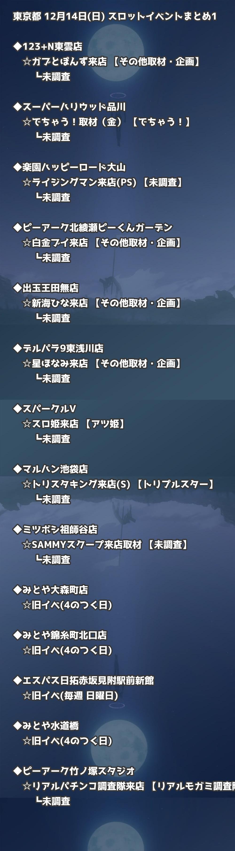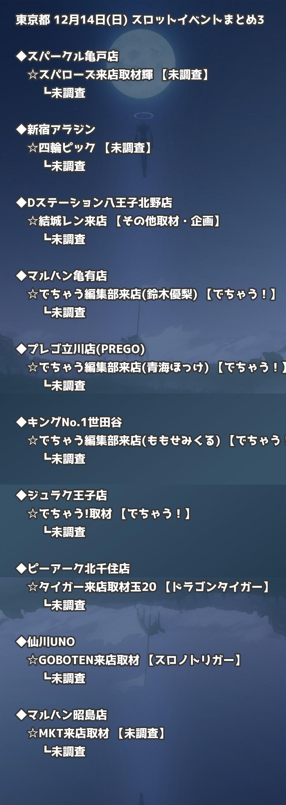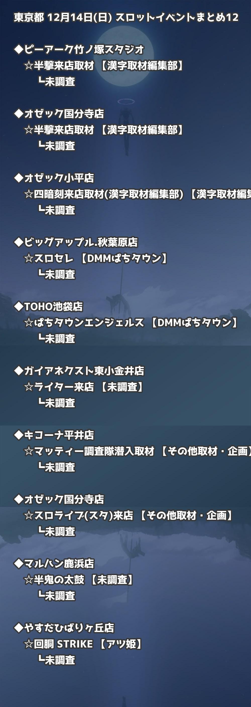 【東京都】12月14日(日) パチンコホールイベント取材まとめ記事です。