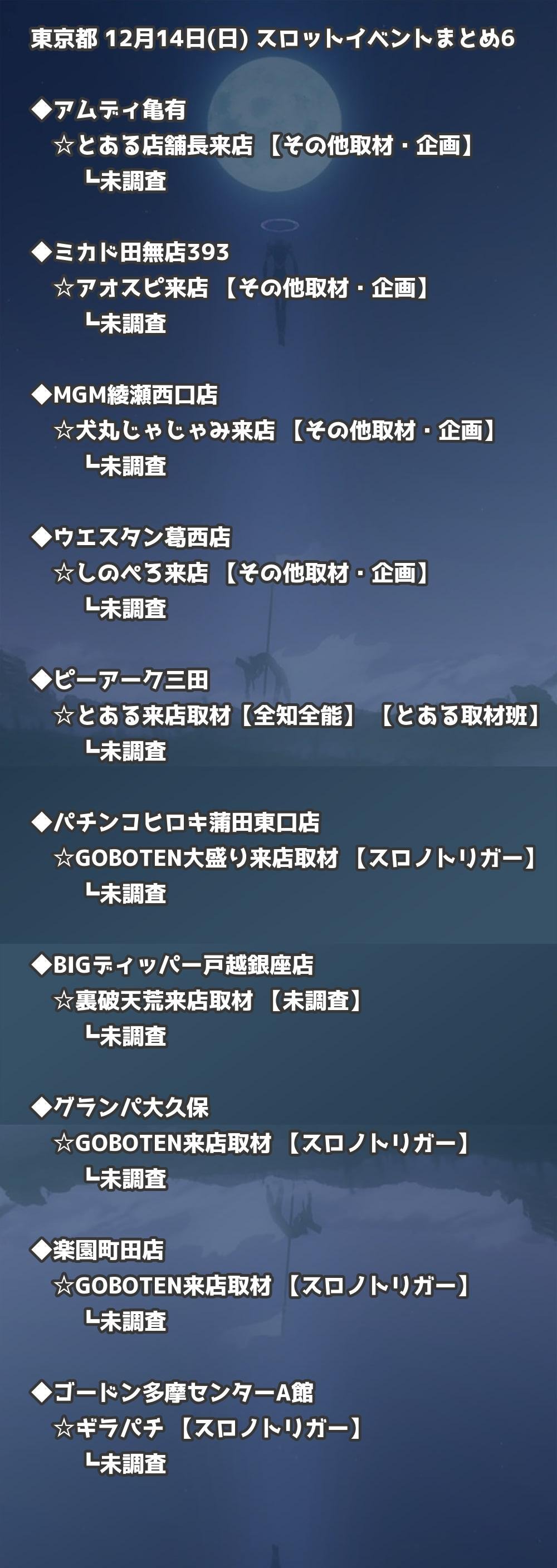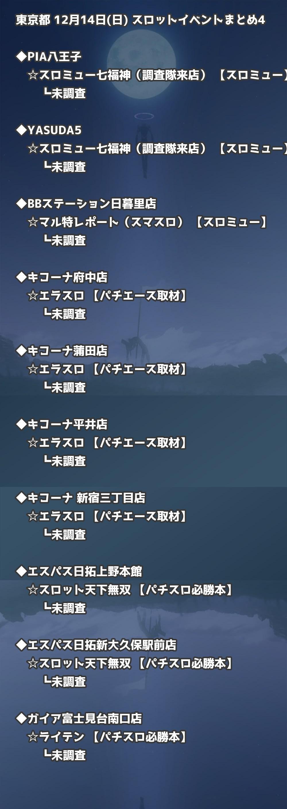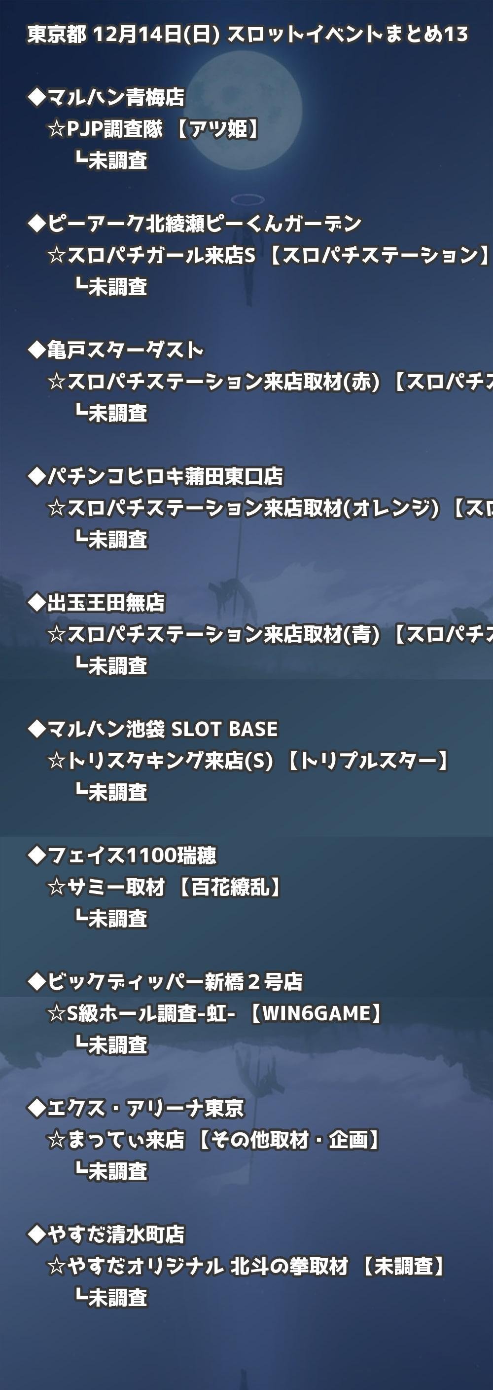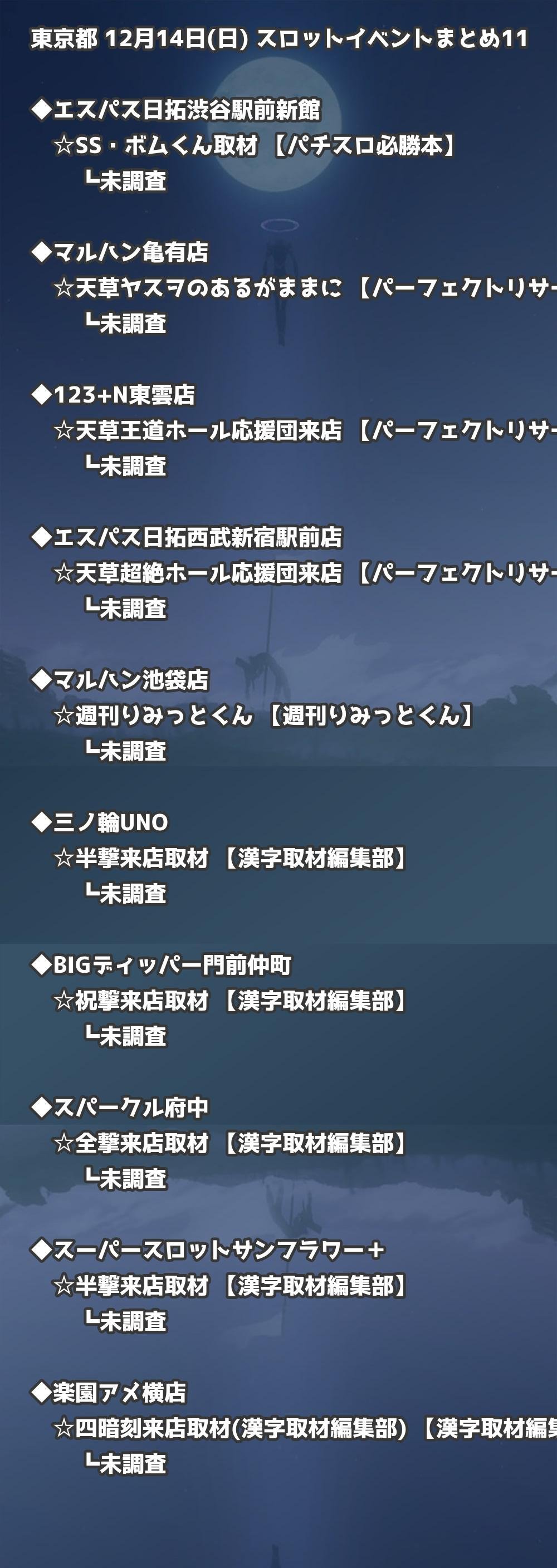 【東京都】12月14日(日) パチンコホールイベント取材まとめ記事です。