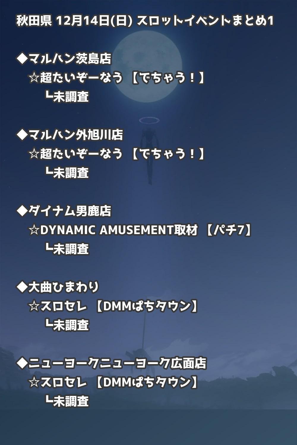 【秋田県】12月14日(日) パチンコホールイベント取材まとめ記事です。