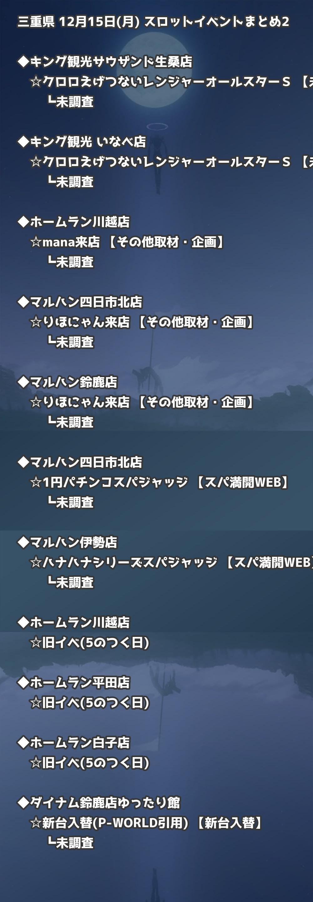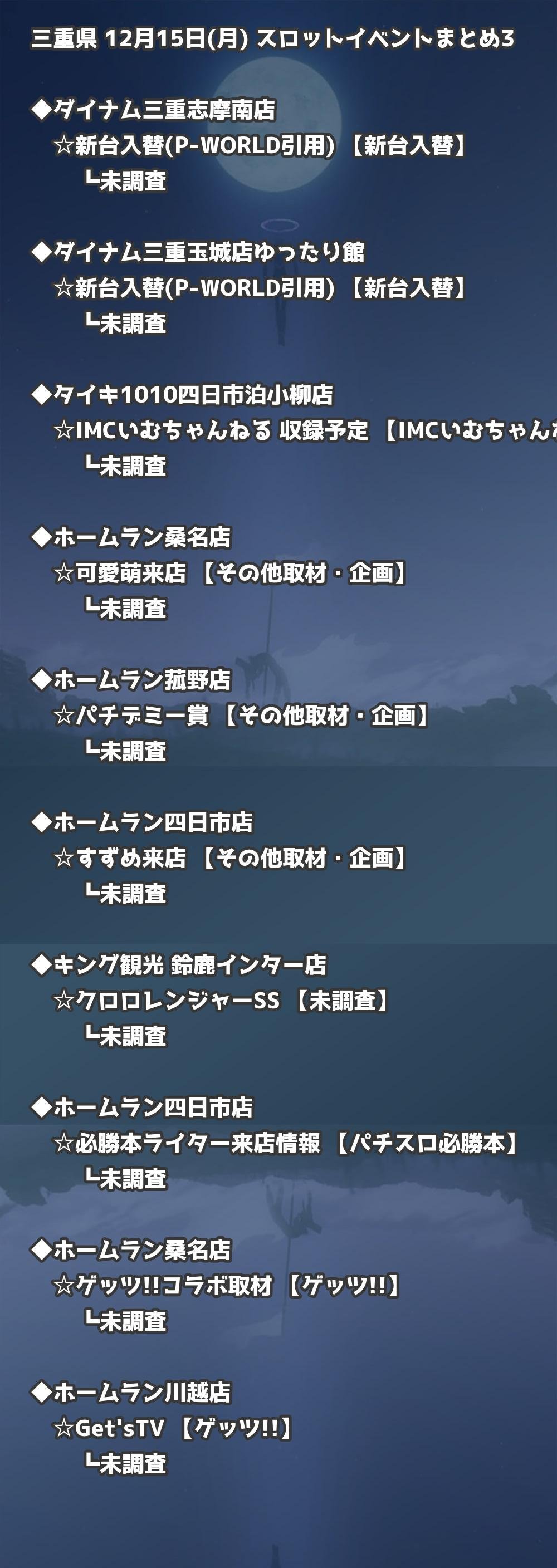 【三重県】12月15日(月) パチンコホールイベント取材まとめ記事です。