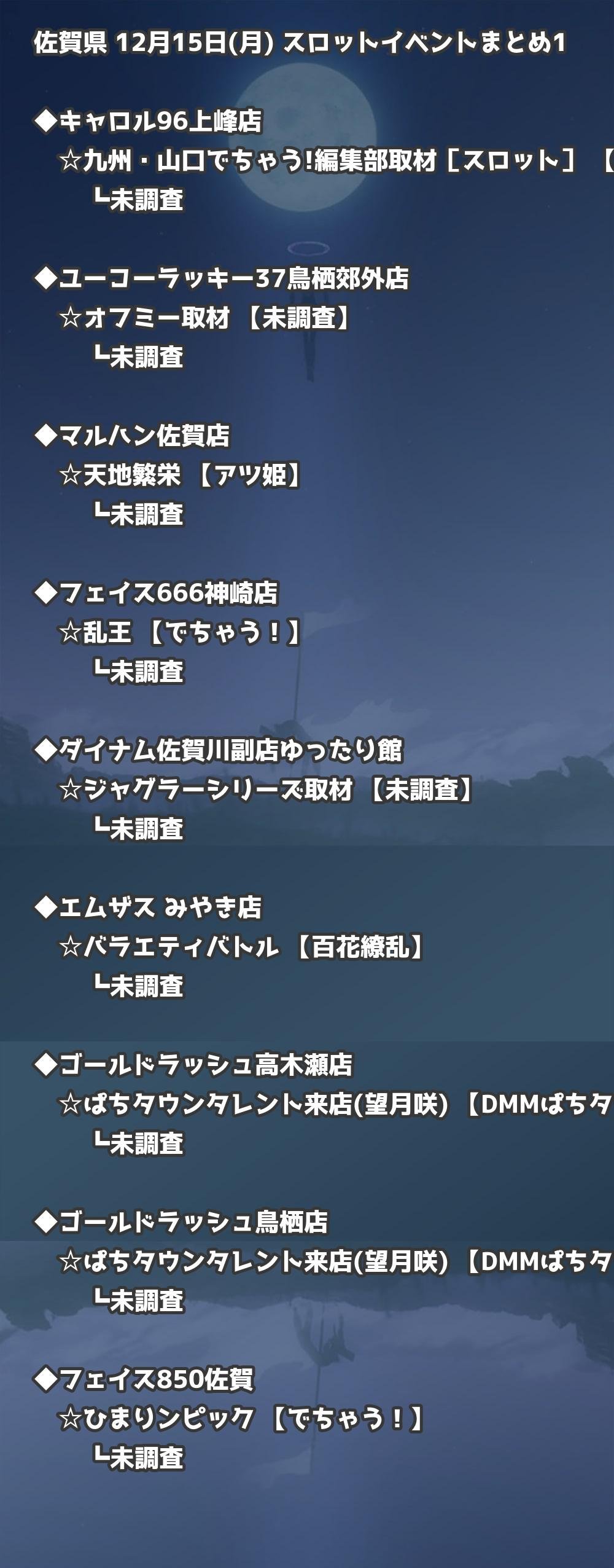 📊 佐賀県 12月15日(月) 勝てるパチンコ・スロット取材店舗一覧|おすすめ順