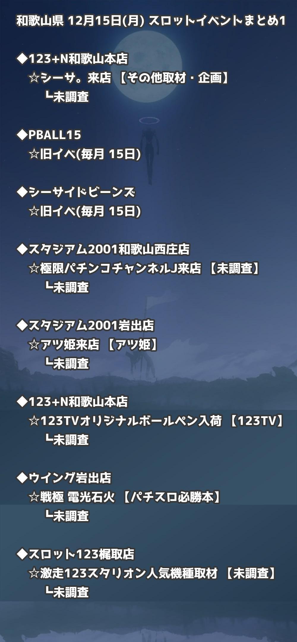 【和歌山県】12月15日(月) パチンコホールイベント取材まとめ記事です。