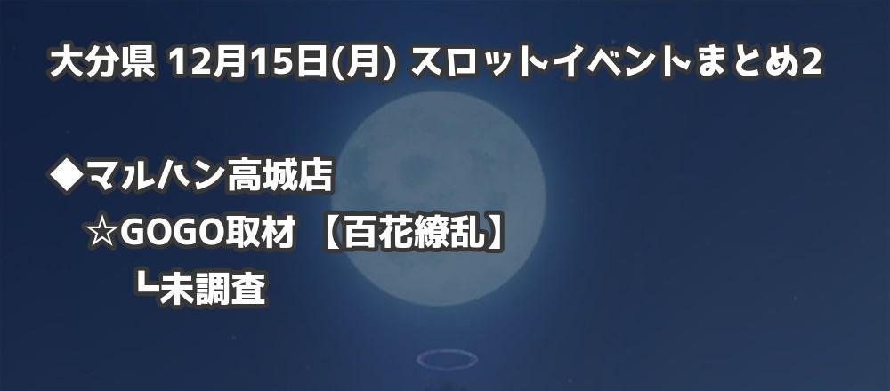 【大分県】12月15日(月) パチンコホールイベント取材まとめ記事です。