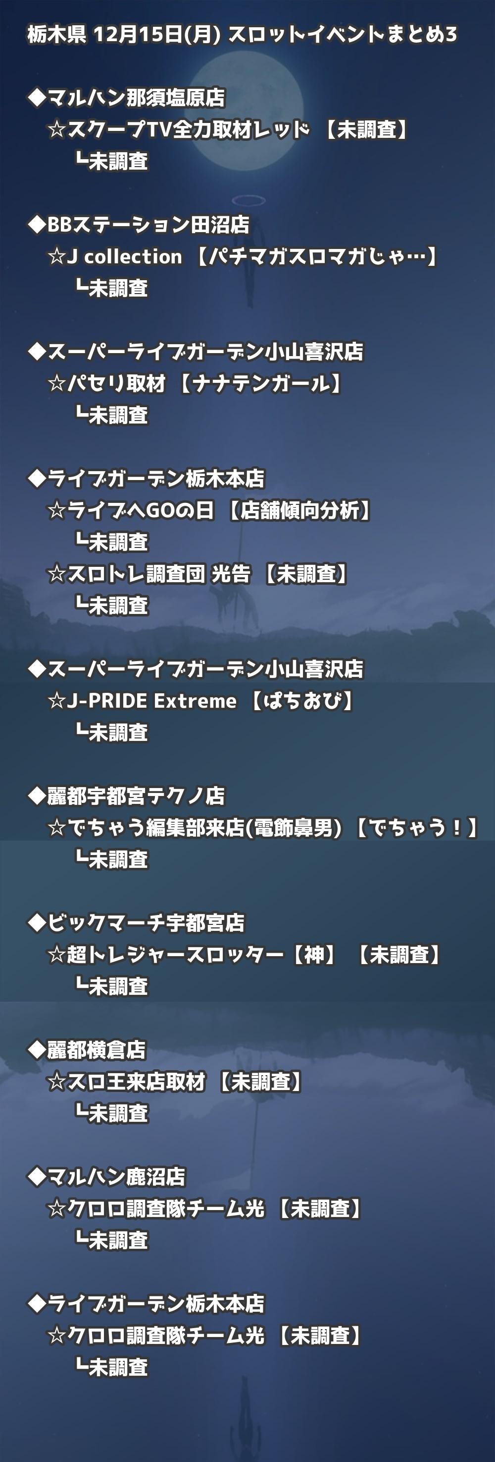 【栃木県】12月15日(月) パチンコホールイベント取材まとめ記事です。