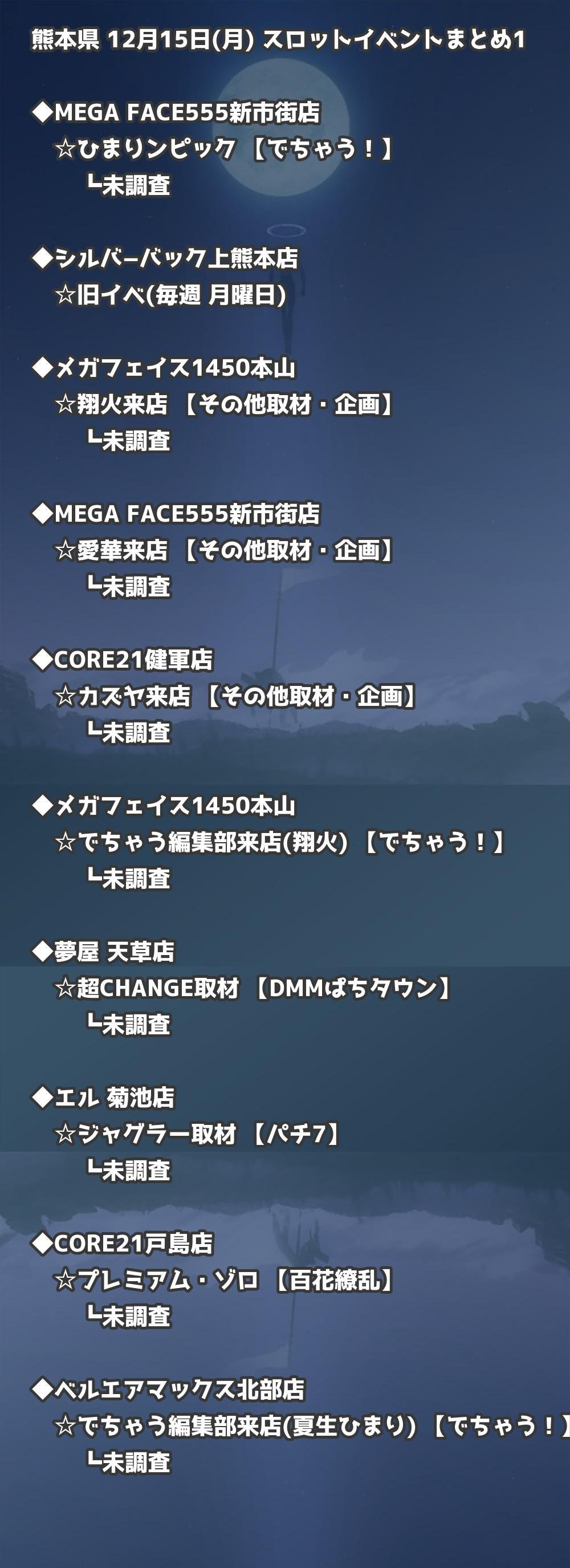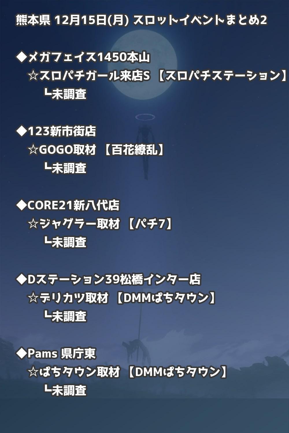 【熊本県】12月15日(月) パチンコホールイベント取材まとめ記事です。