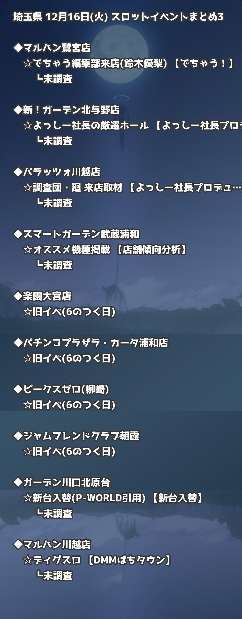 【埼玉県】12月16日(火) パチンコホールイベント取材まとめ記事です。