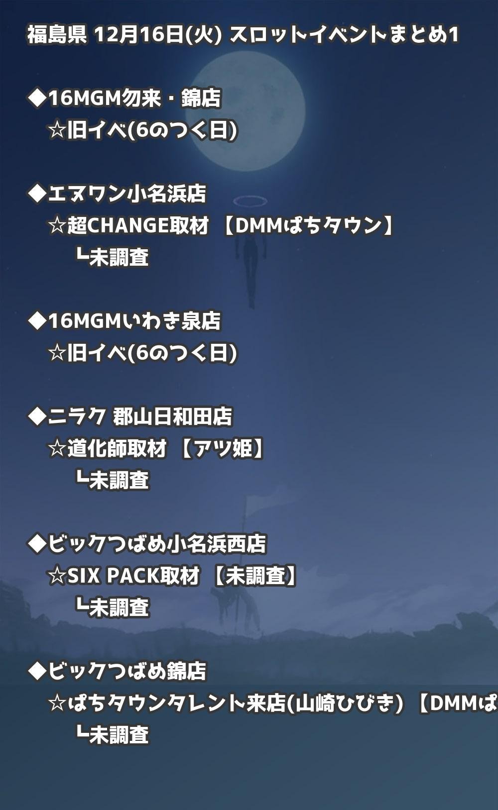 【福島県】12月16日(火) パチンコホールイベント取材まとめ記事です。
