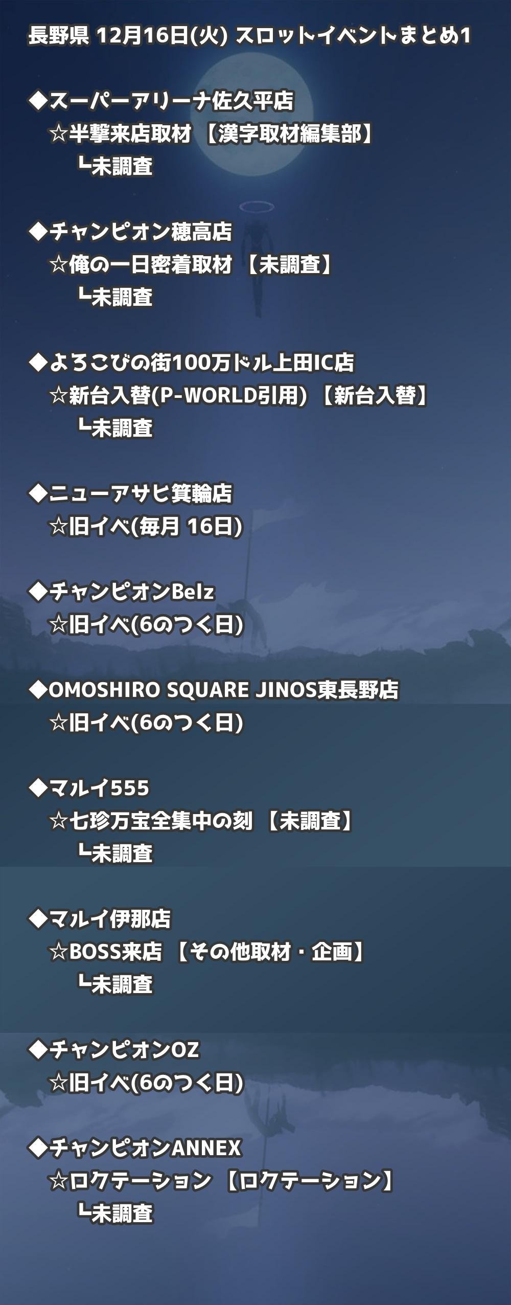 📊 長野県 12月16日(火) 勝てるパチンコ・スロット取材店舗一覧|おすすめ順