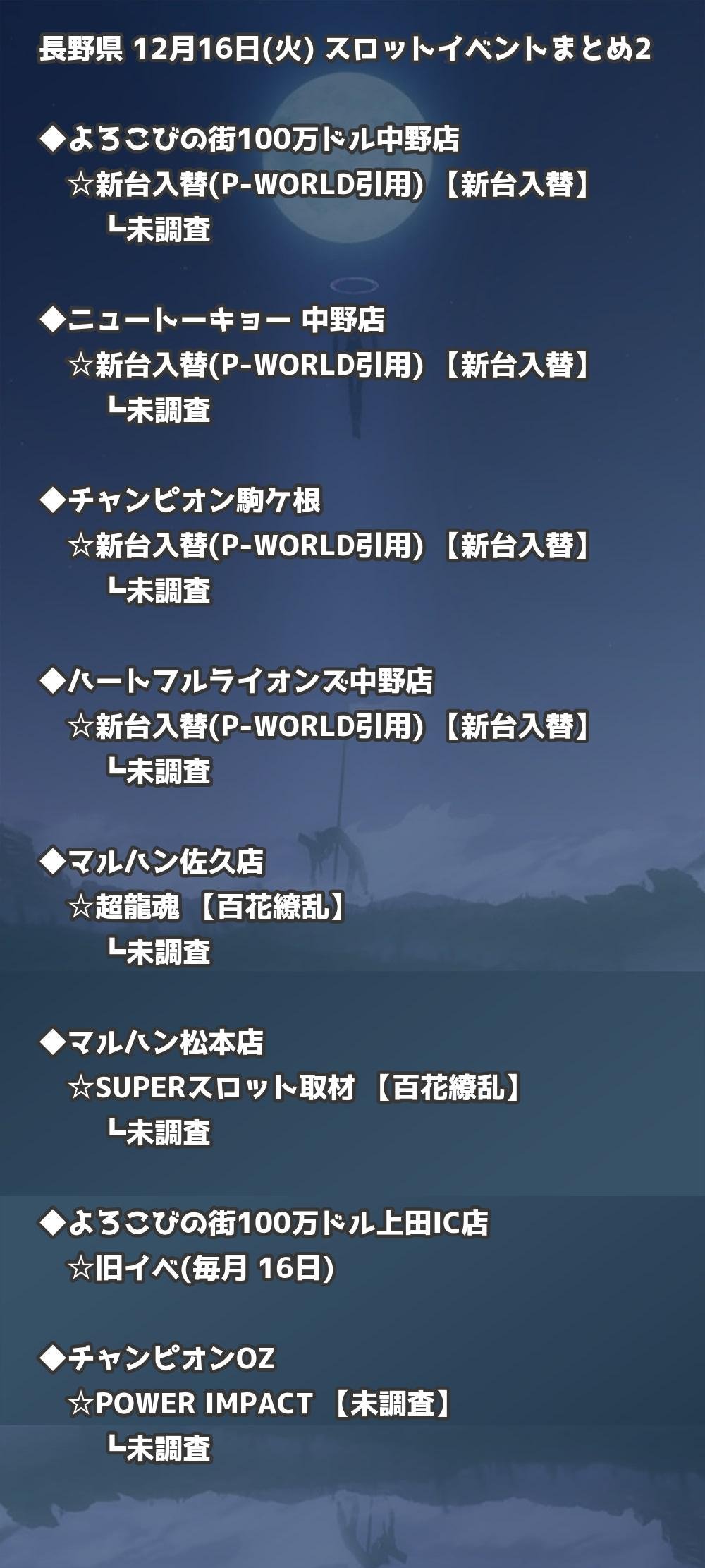 【長野県】12月16日(火) パチンコホールイベント取材まとめ記事です。