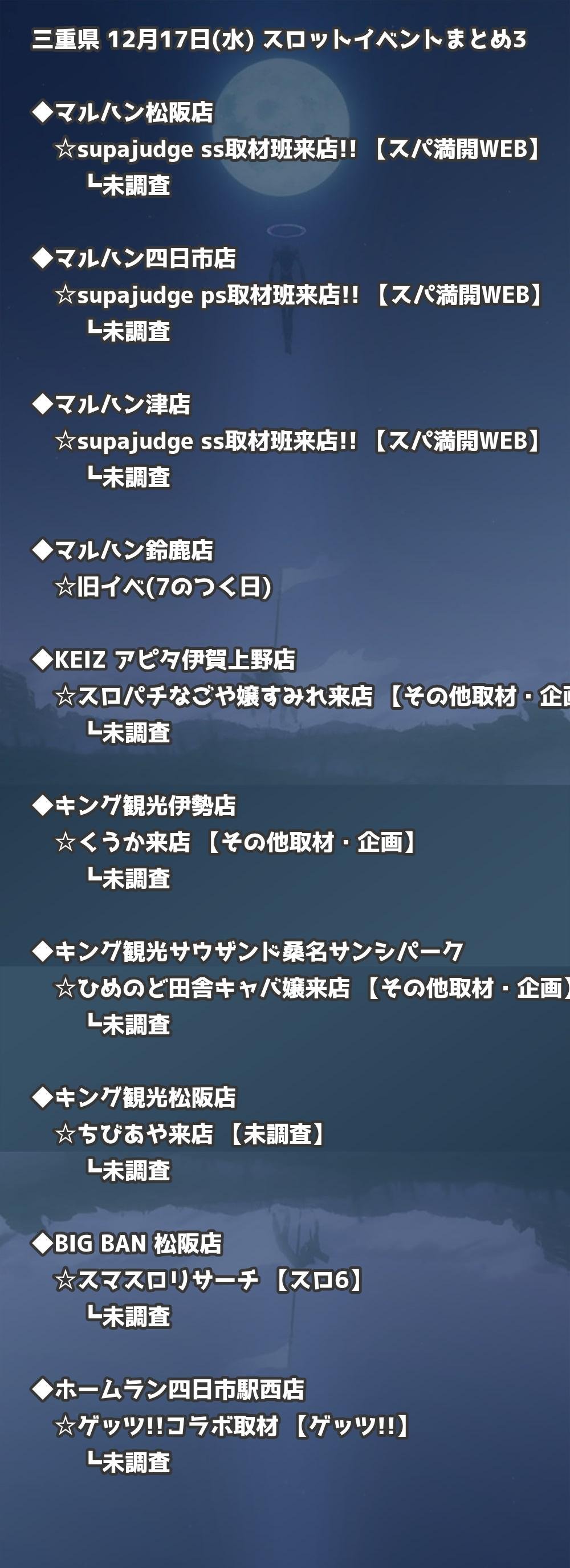 📊 三重県 12月17日(水) 勝てるパチンコ・スロット取材店舗一覧|おすすめ順