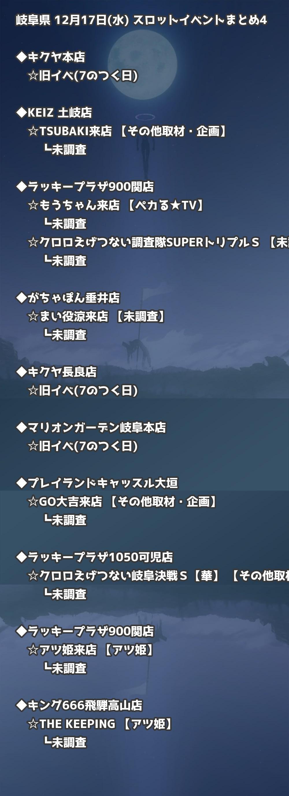 📊 岐阜県 12月17日(水) 勝てるパチンコ・スロット取材店舗一覧|おすすめ順