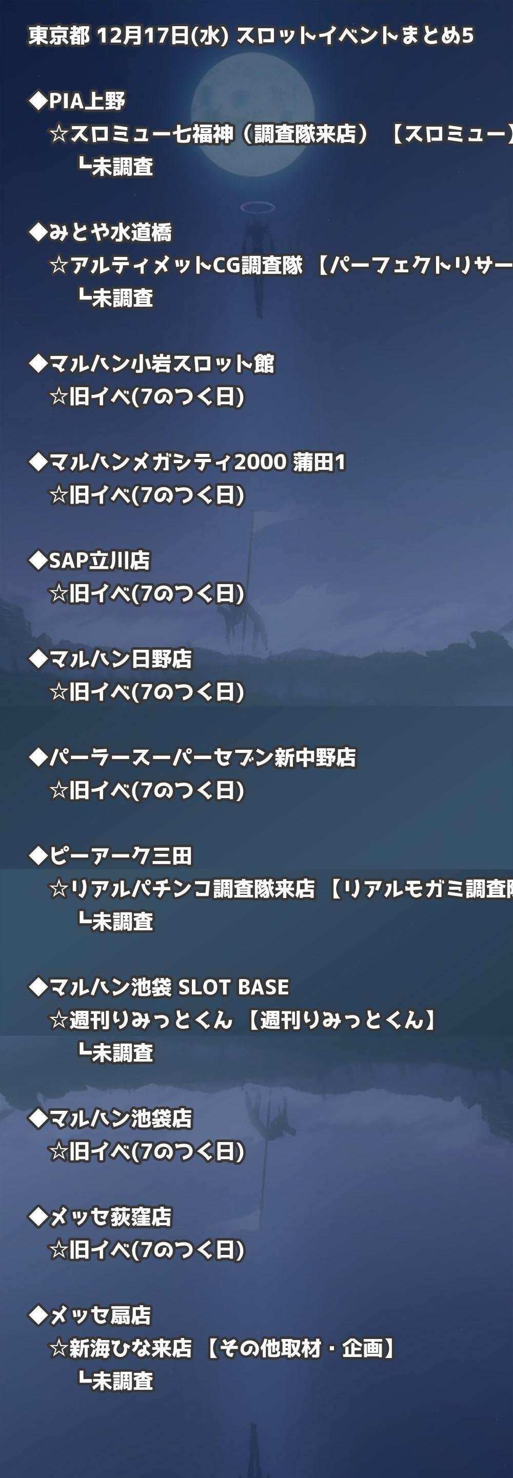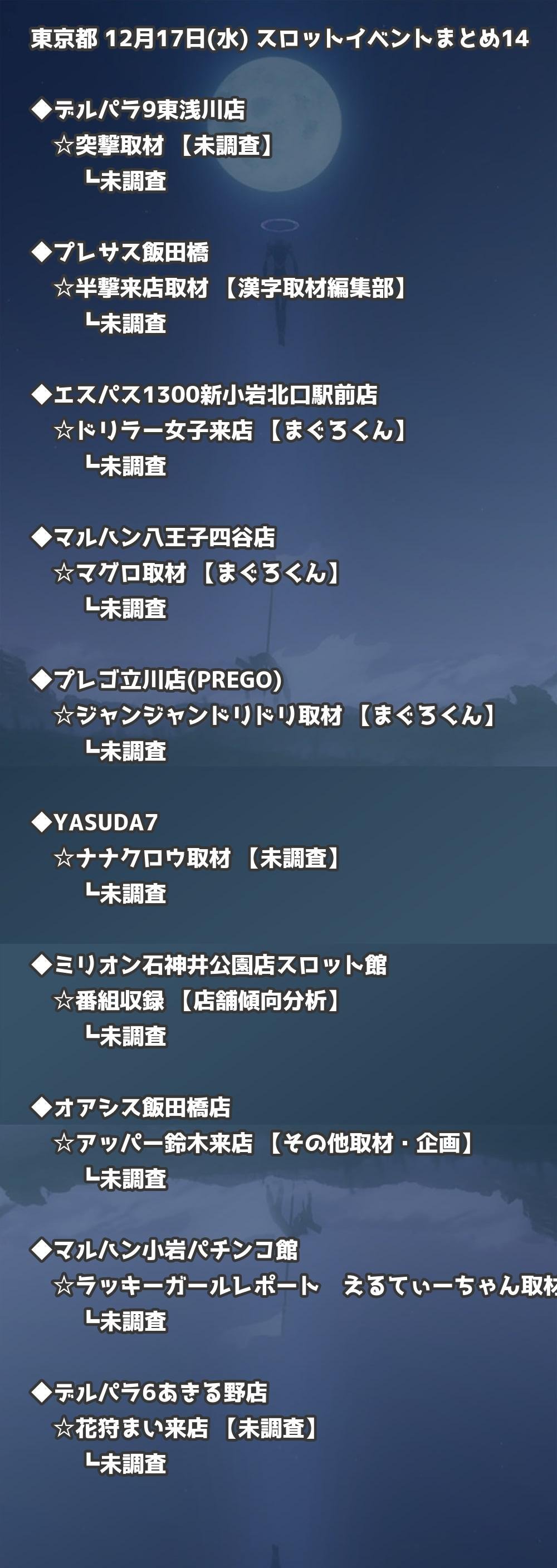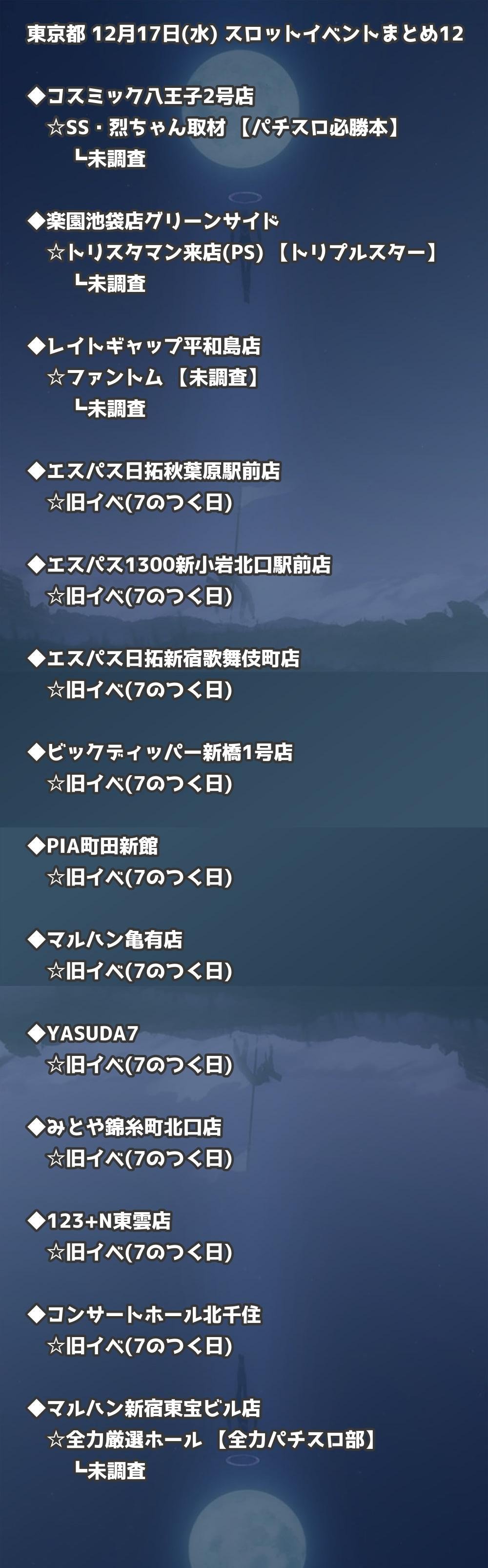 【東京都】12月17日(水) パチンコホールイベント取材まとめ記事です。