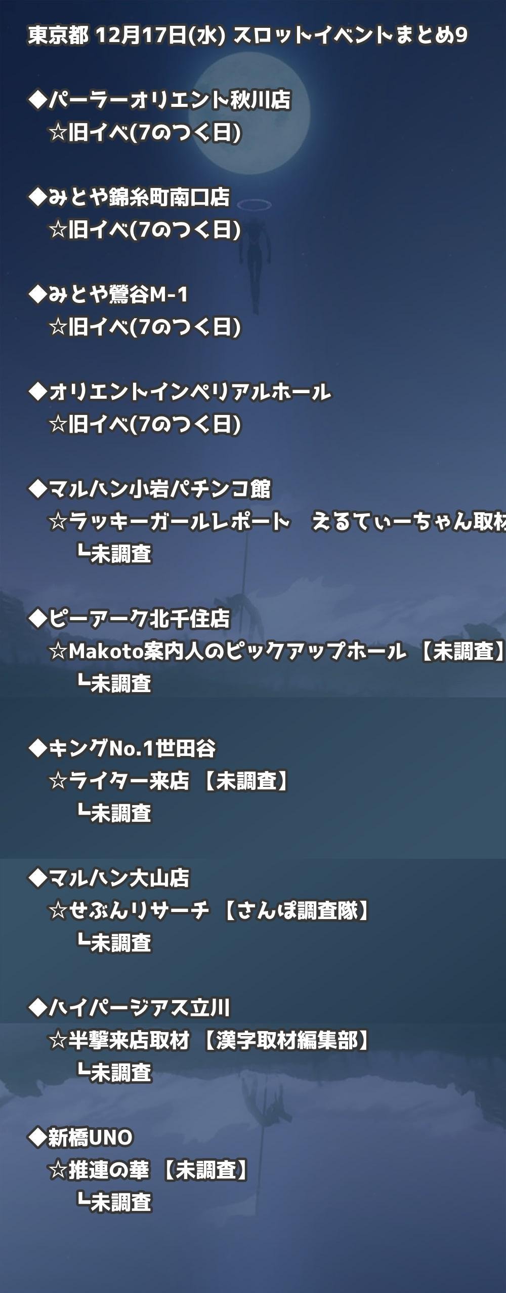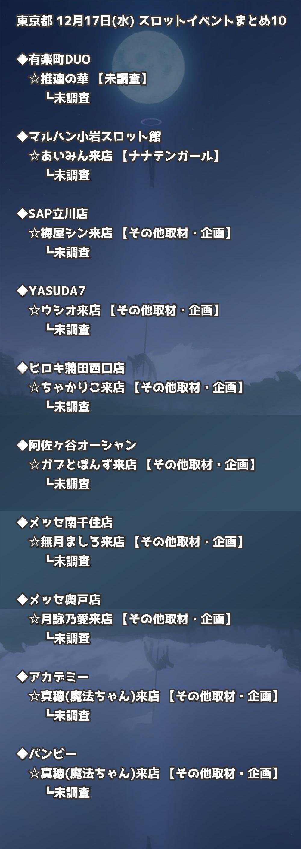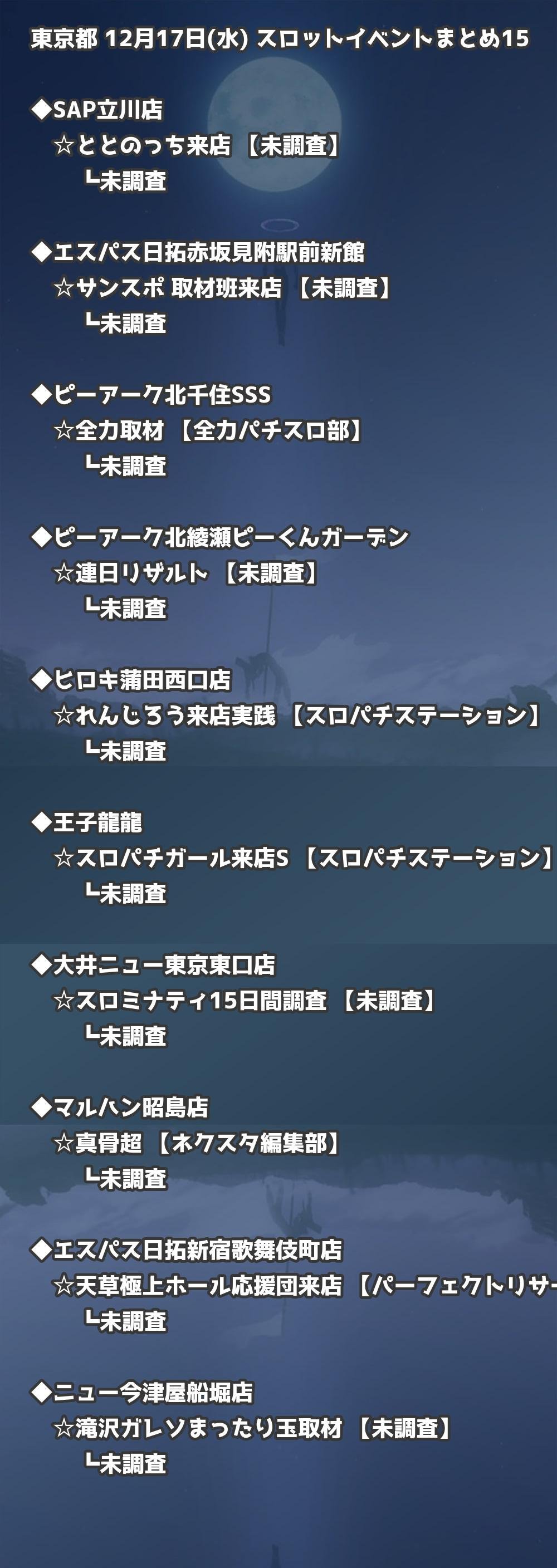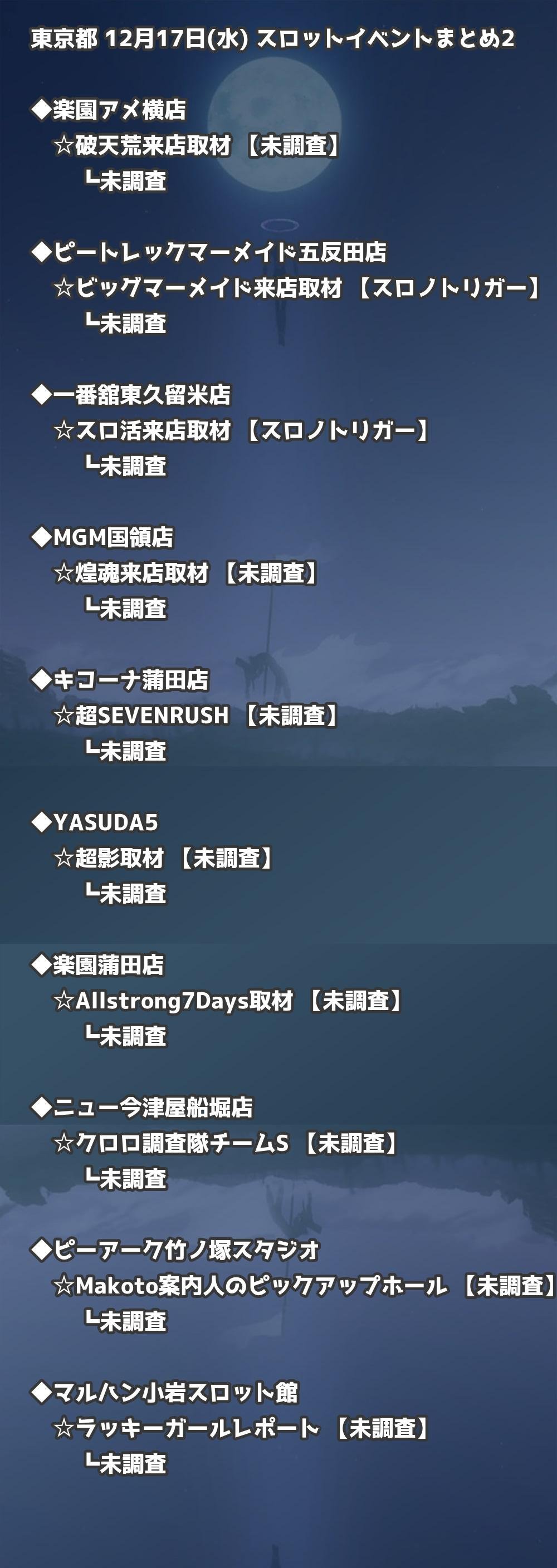 【東京都】12月17日(水) パチンコホールイベント取材まとめ記事です。