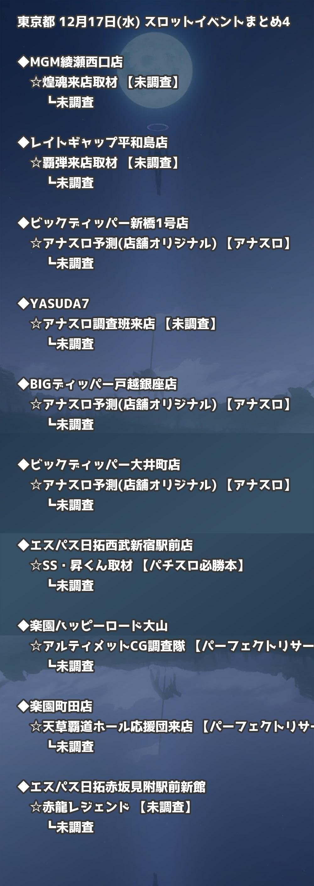📊 東京都 12月17日(水) 勝てるパチンコ・スロット取材店舗一覧|おすすめ順