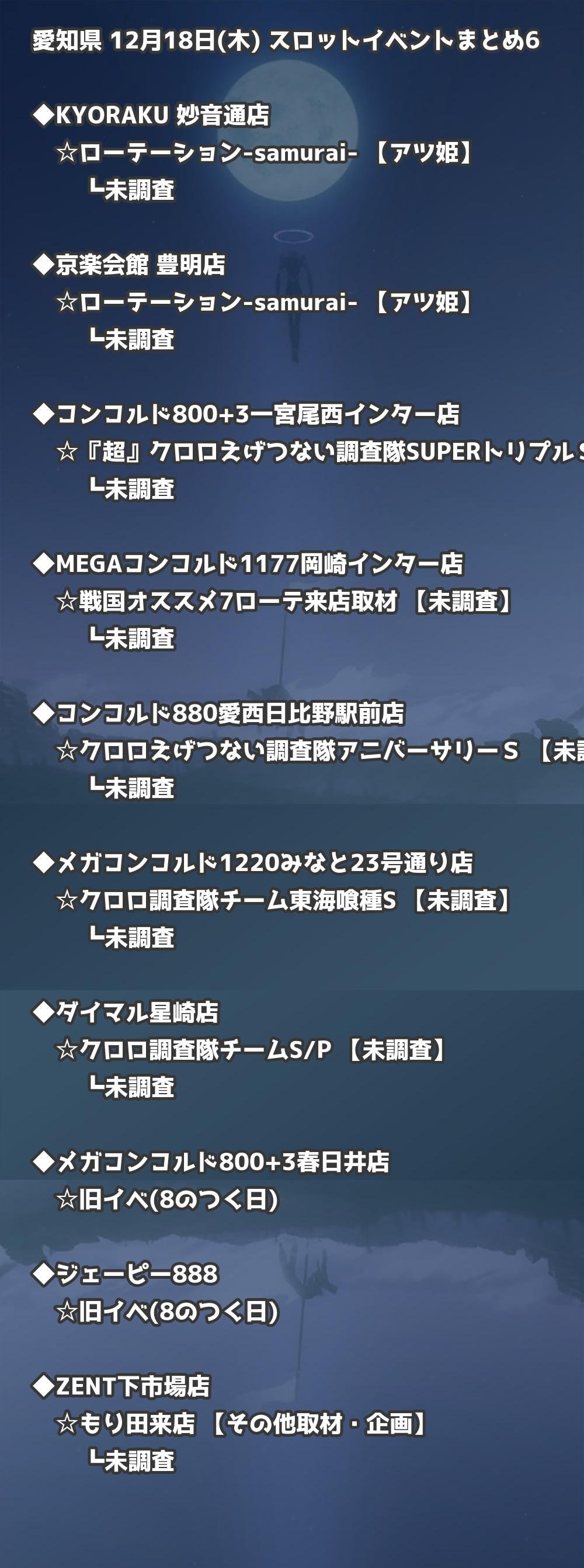 | MEGAコンコルド1177岡崎インター店 | 戦国オススメ7ローテ来店取材 | 未調査 |