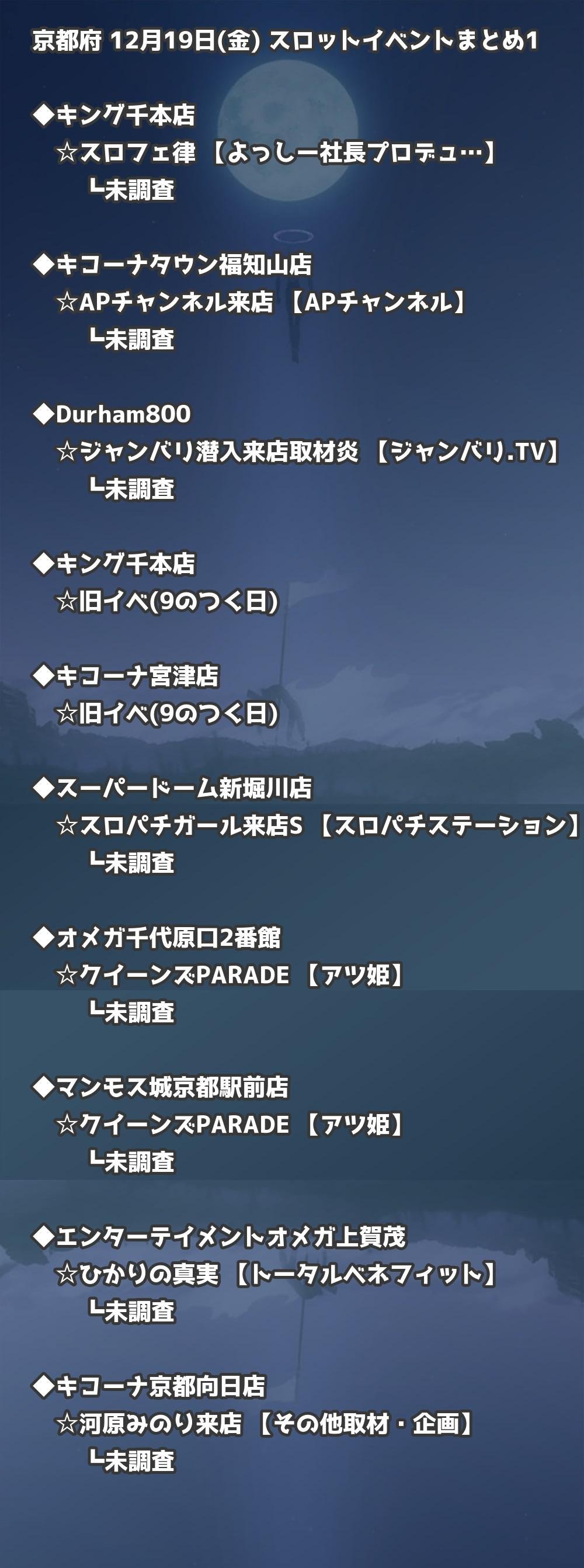 【京都府】12月19日(金) パチンコホールイベント取材まとめ記事です。