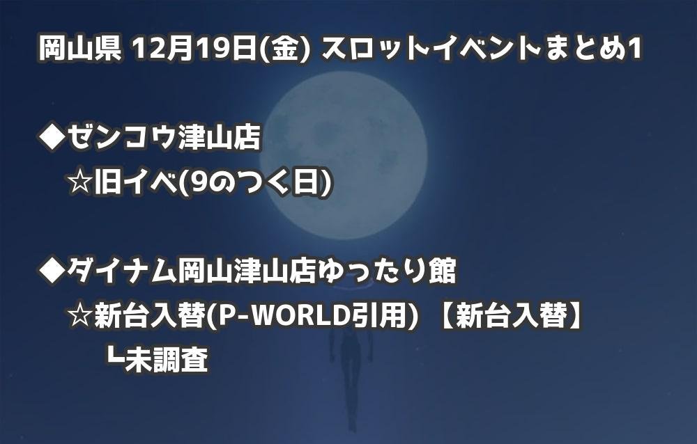 【岡山県】12月19日(金) パチンコホールイベント取材まとめ記事です。