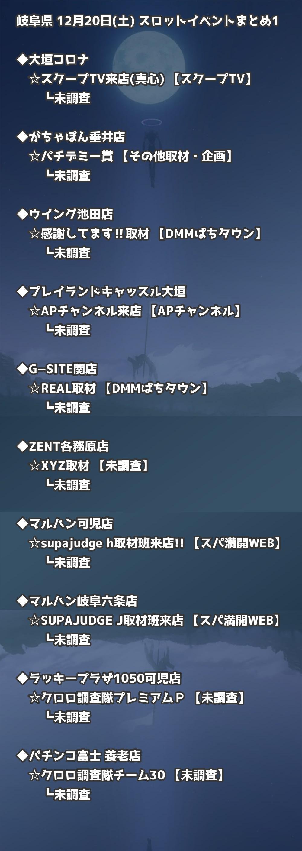 【岐阜県】12月20日(土) パチンコホールイベント取材まとめ記事です。