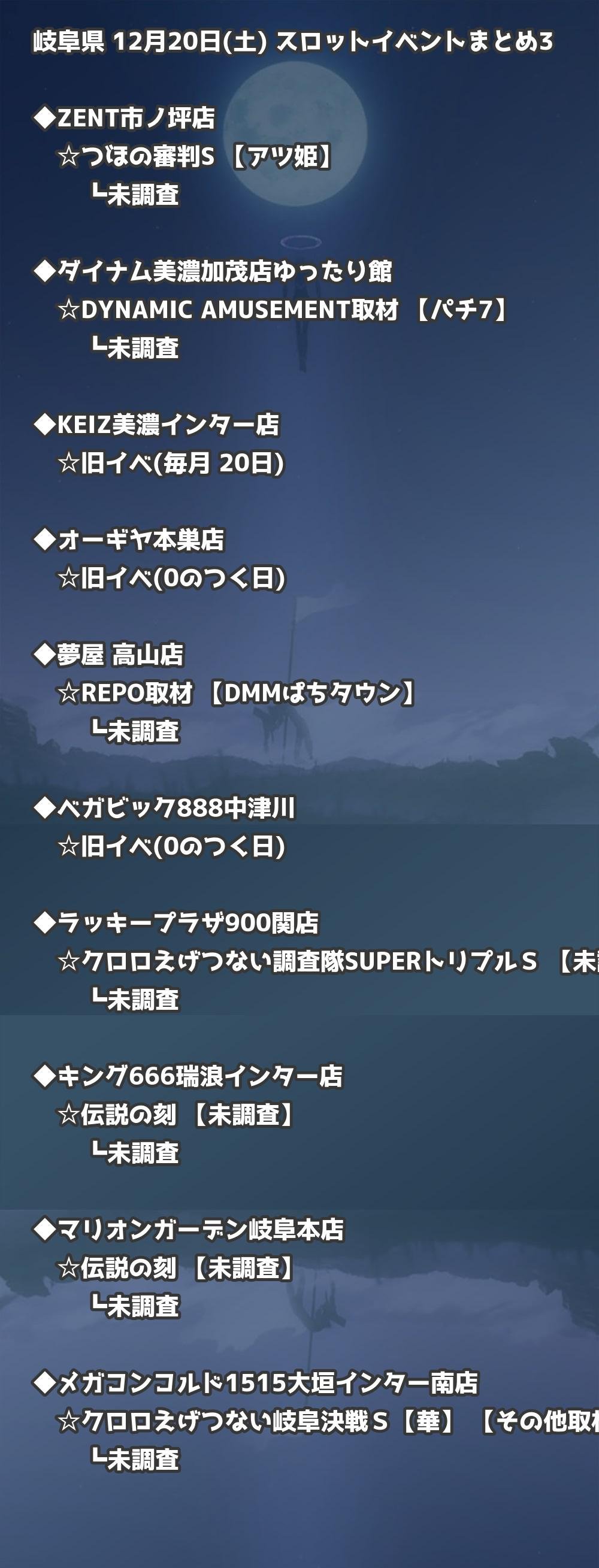 📊 岐阜県 12月20日(土) 勝てるパチンコ・スロット取材店舗一覧|おすすめ順