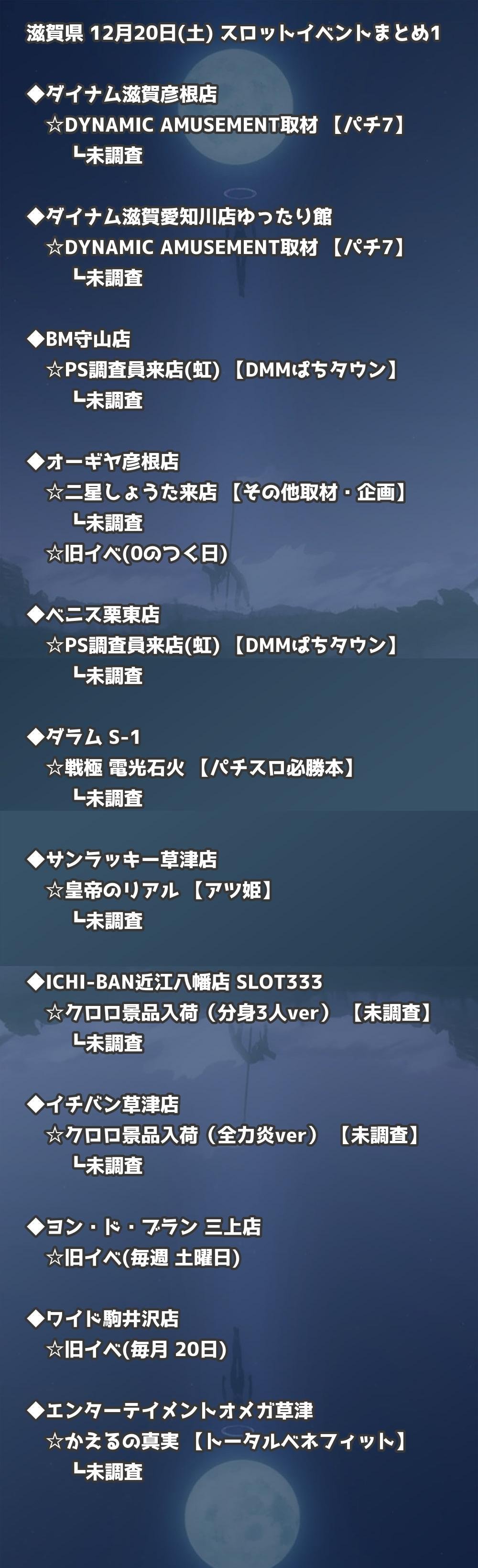 【滋賀県】12月20日(土) パチンコホールイベント取材まとめ記事です。