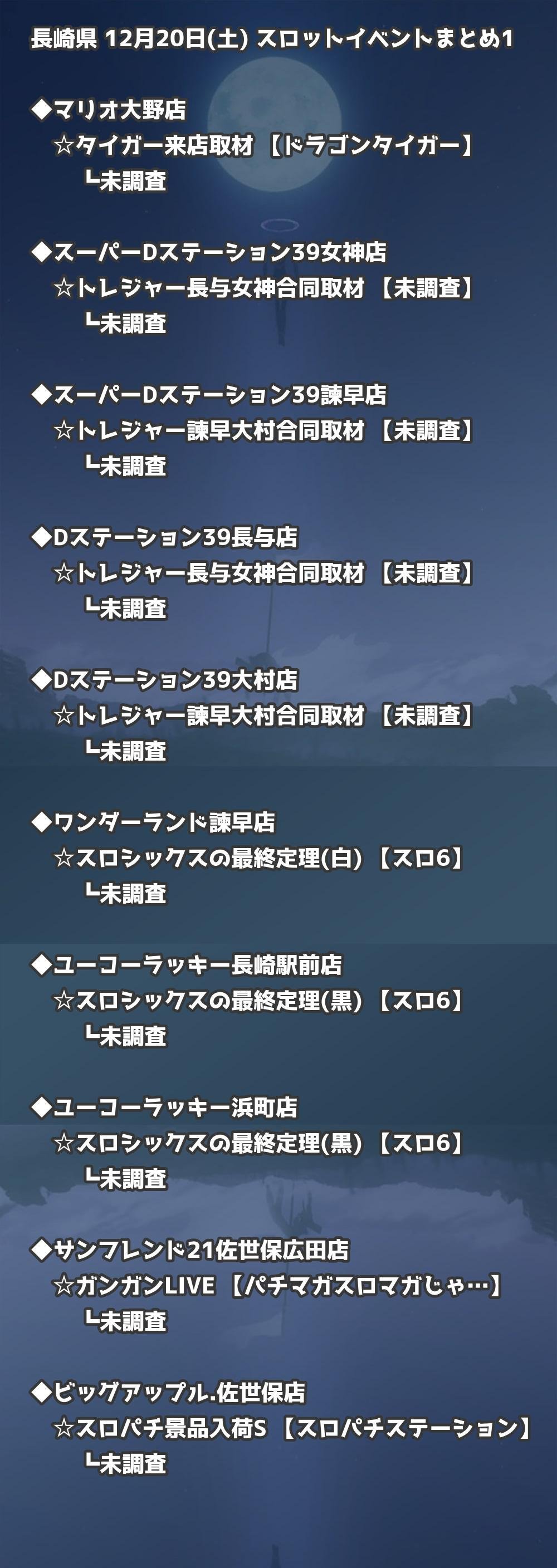 ※店舗結果掲載済 【長崎】12月20日(土) 今日のスロット・パチンコ激熱イベント取材まとめ