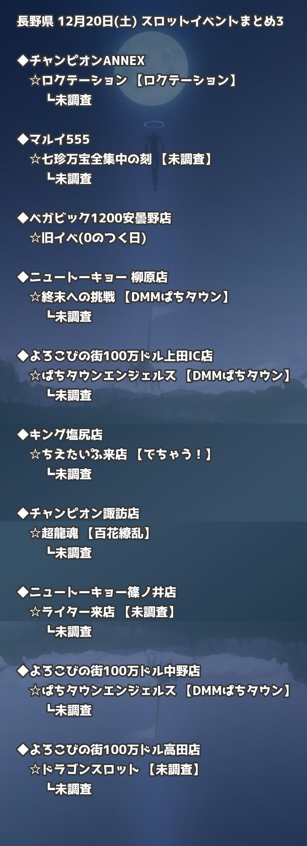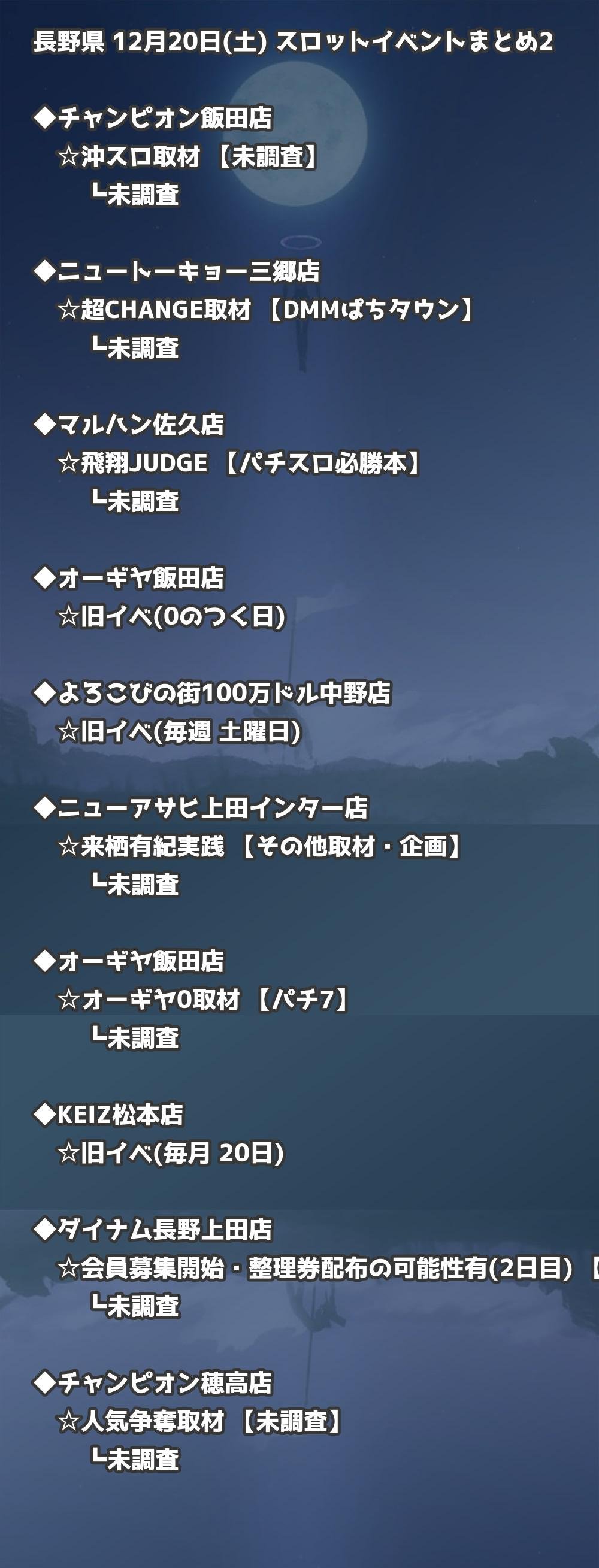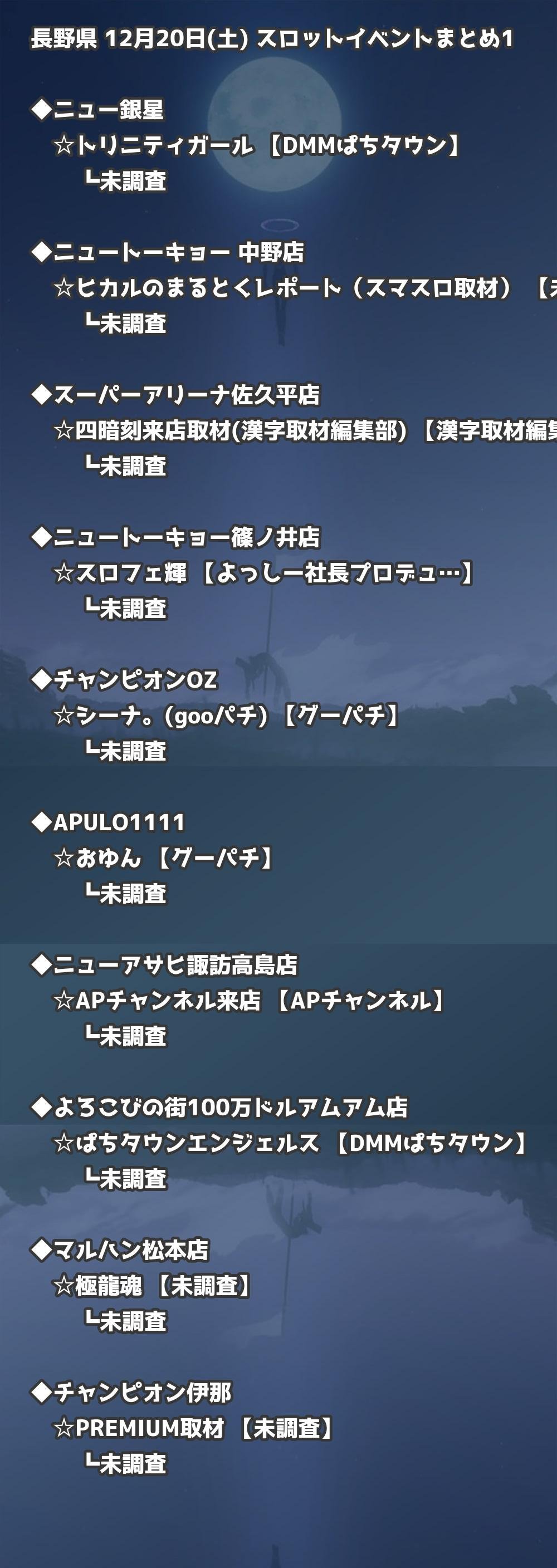 📊 長野県 12月20日(土) 勝てるパチンコ・スロット取材店舗一覧|おすすめ順
