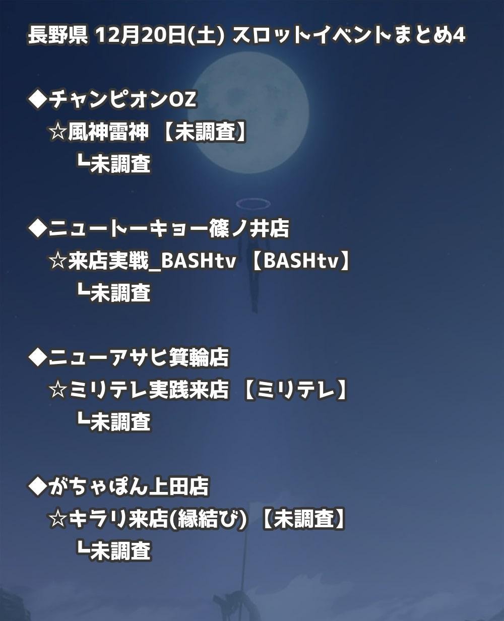 【長野県】12月20日(土) パチンコホールイベント取材まとめ記事です。