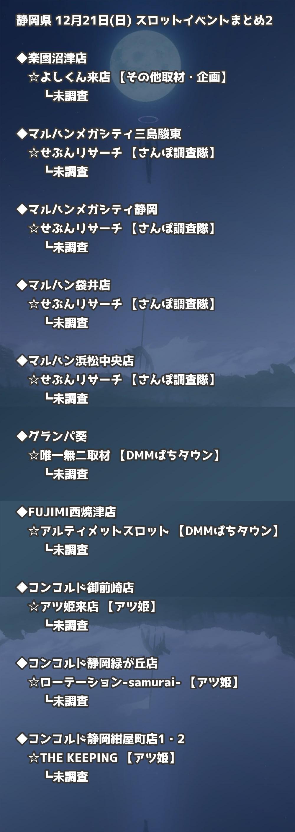 【静岡県】12月21日(日) パチンコホールイベント取材まとめ記事です。