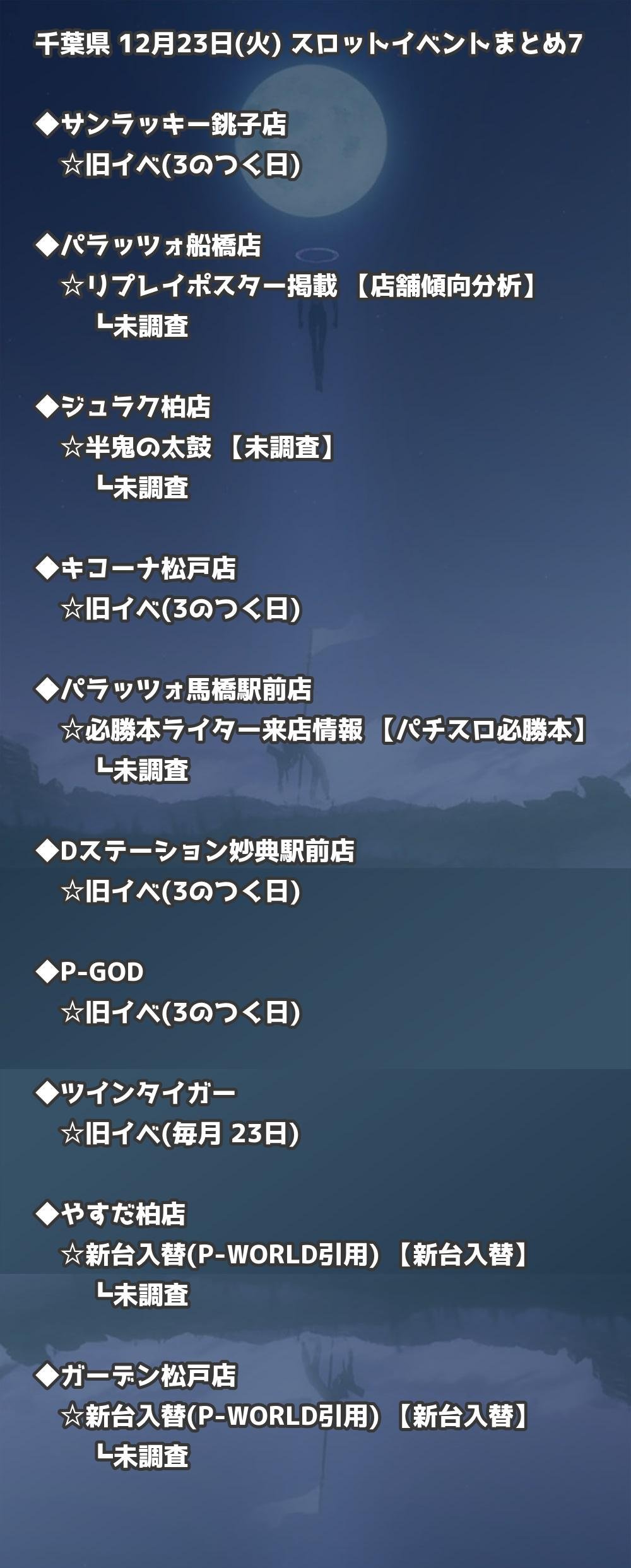 【千葉県】12月23日(火) パチンコホールイベント取材まとめ記事です。