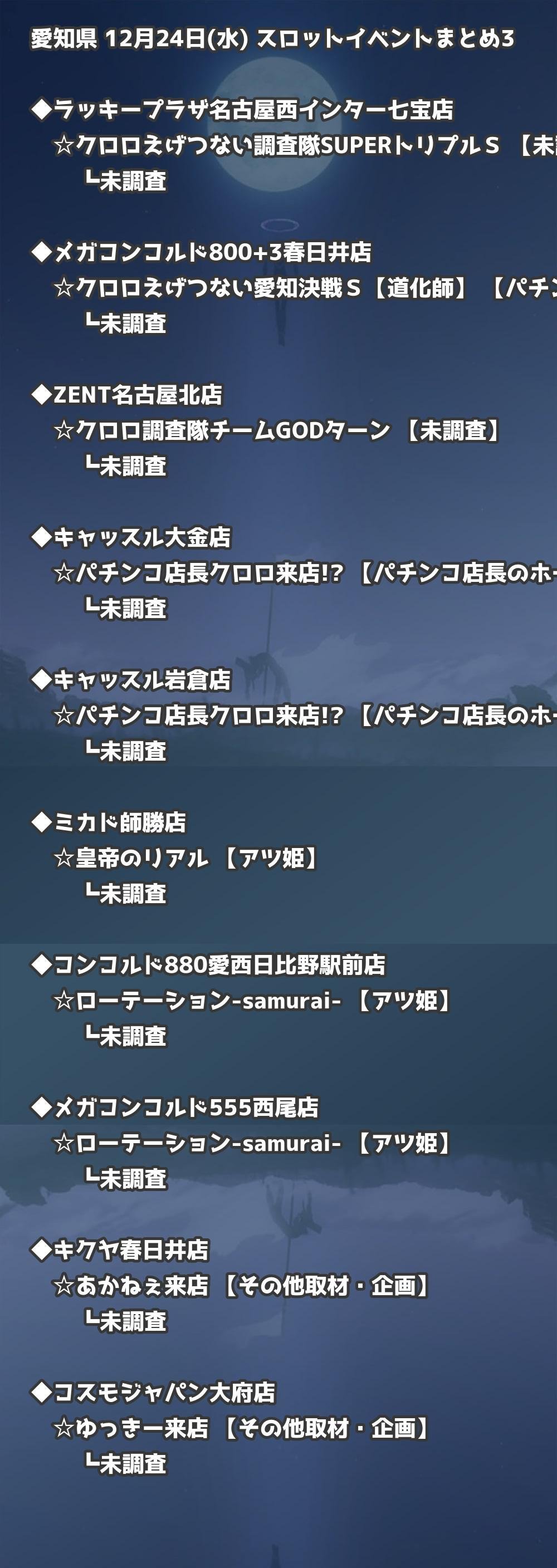 【愛知県】12月24日(水) パチンコホールイベント取材まとめ記事です。