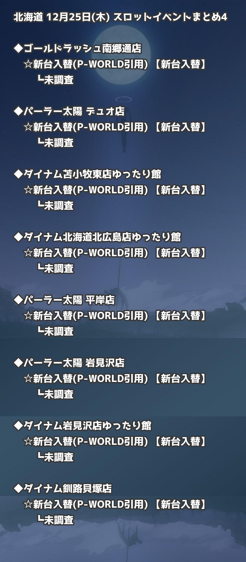【北海道】12月25日(木) パチンコホールイベント取材まとめ記事です。