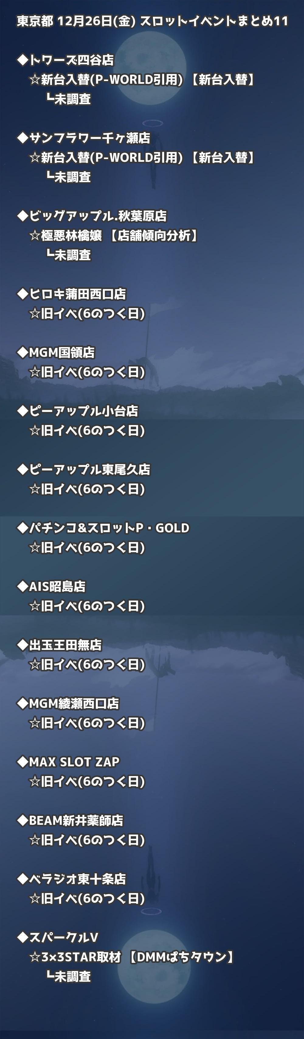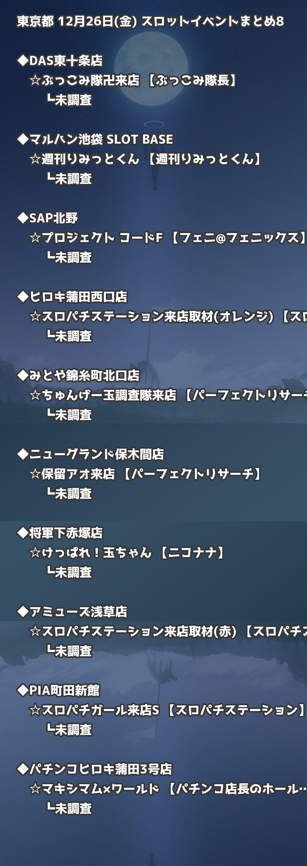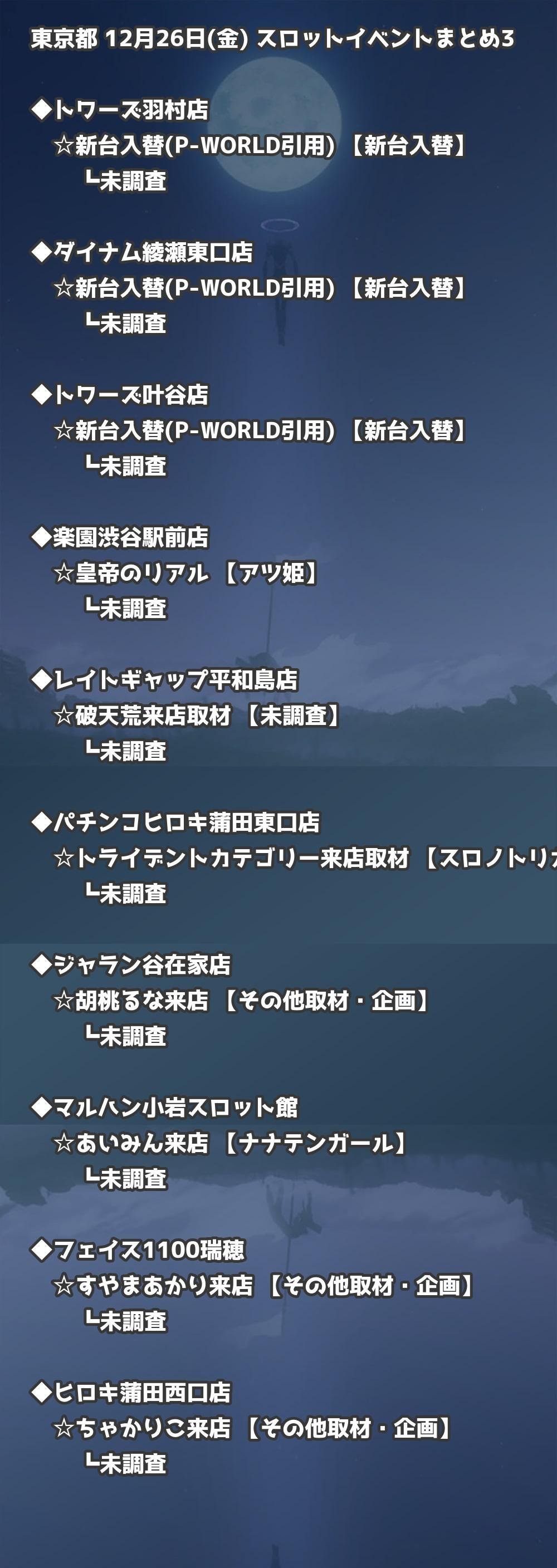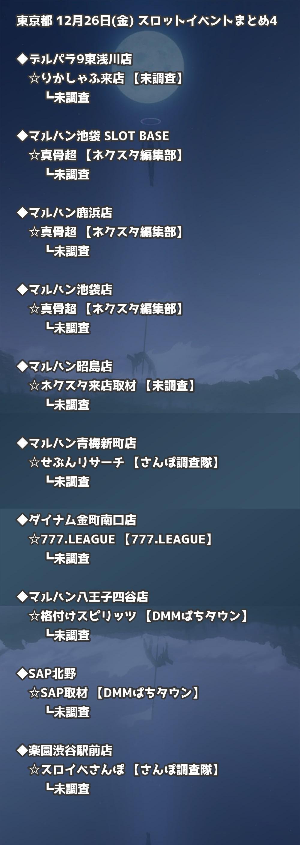 【東京都】12月26日(金) パチンコホールイベント取材まとめ記事です。