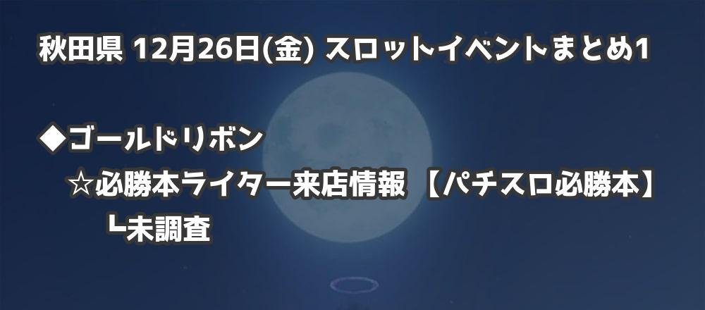 【秋田県】12月26日(金) パチンコホールイベント取材まとめ記事です。
