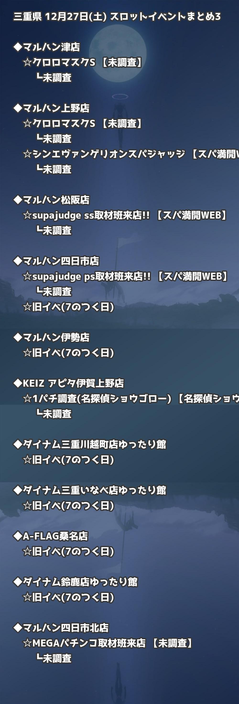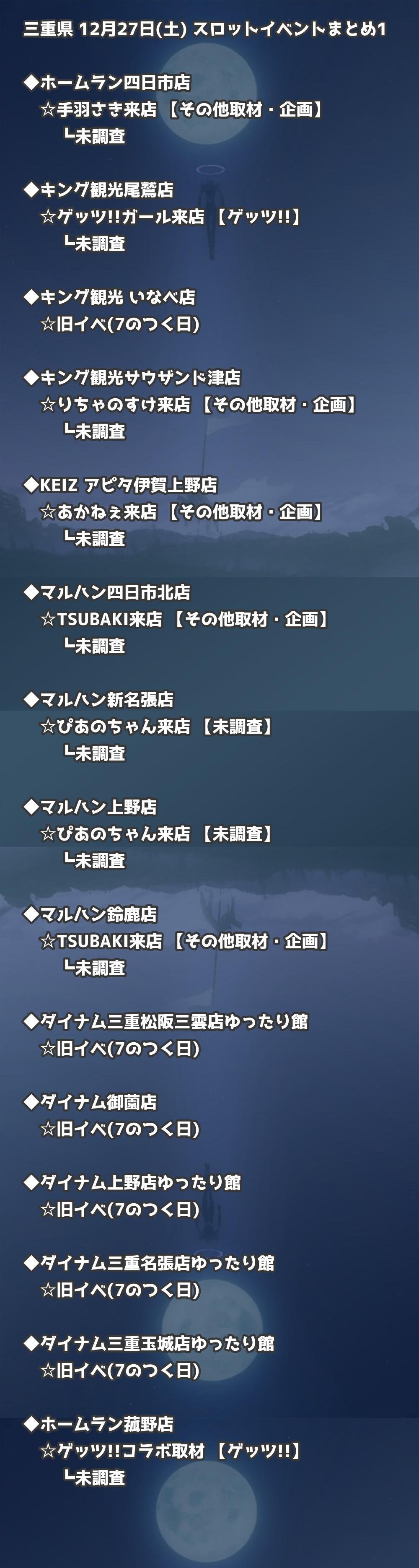 【三重県】12月27日(土) パチンコホールイベント取材まとめ記事です。
