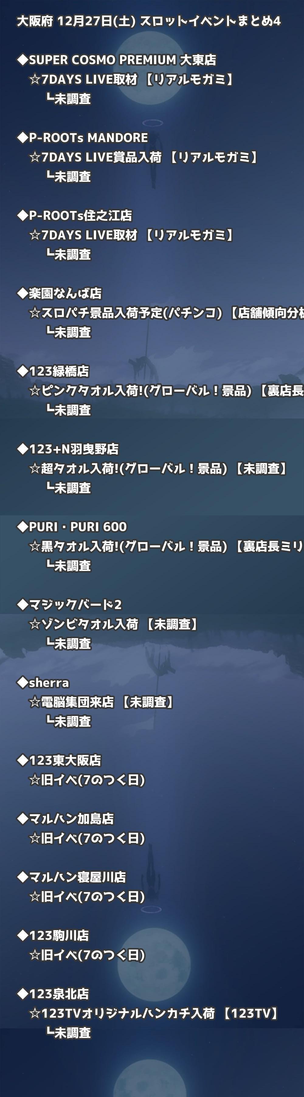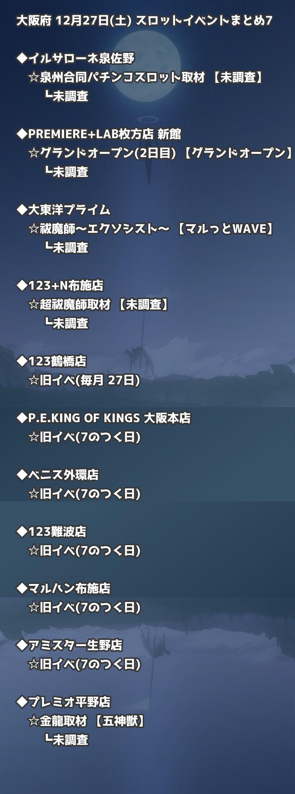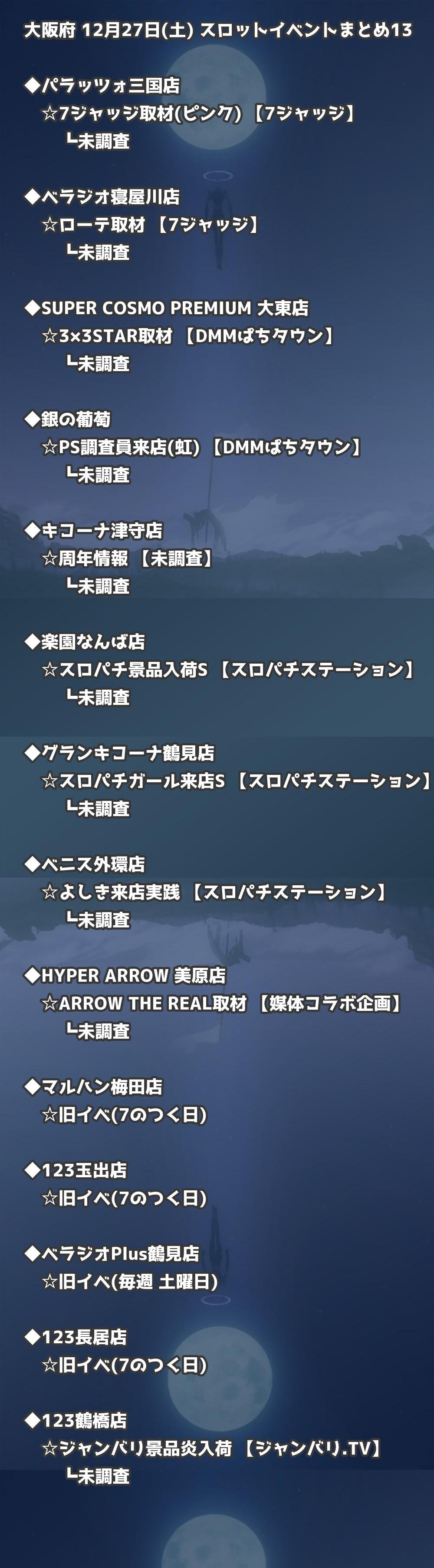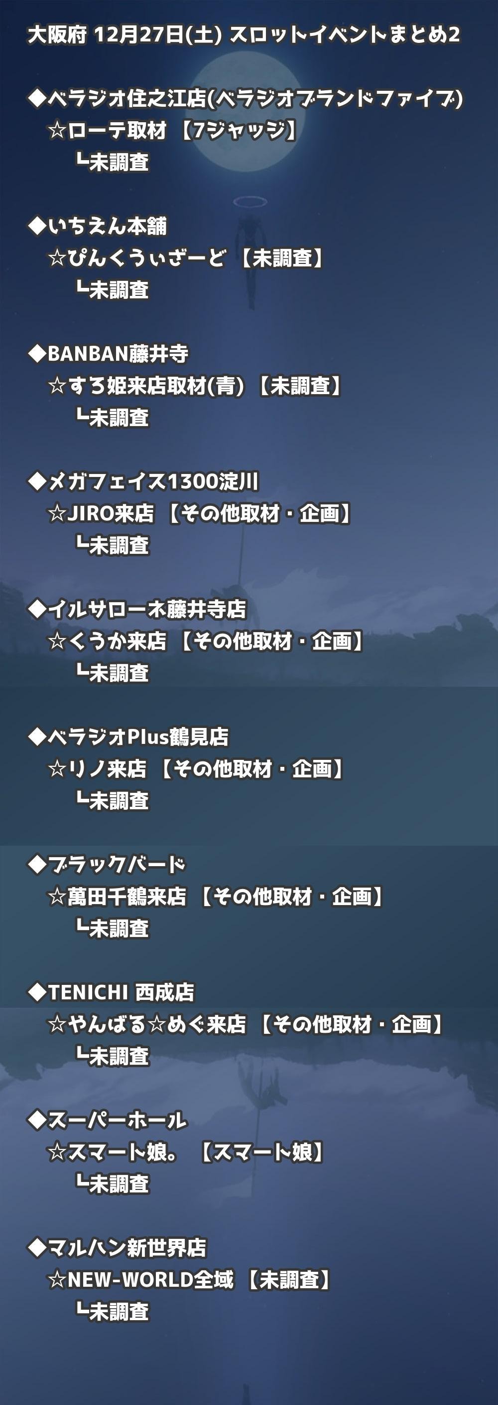 【大阪府】12月27日(土) パチンコホールイベント取材まとめ記事です。