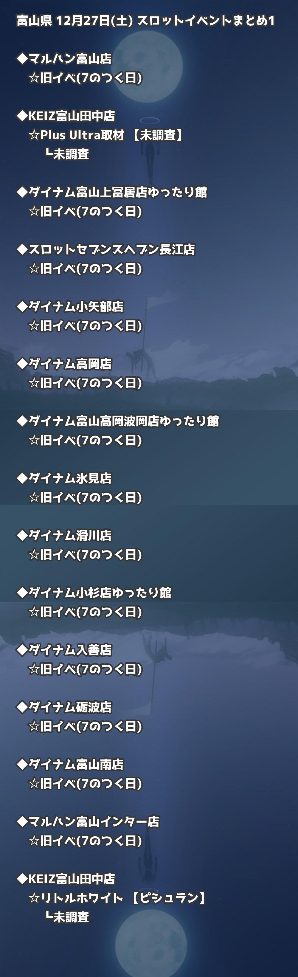 【富山県】12月27日(土) パチンコホールイベント取材まとめ記事です。