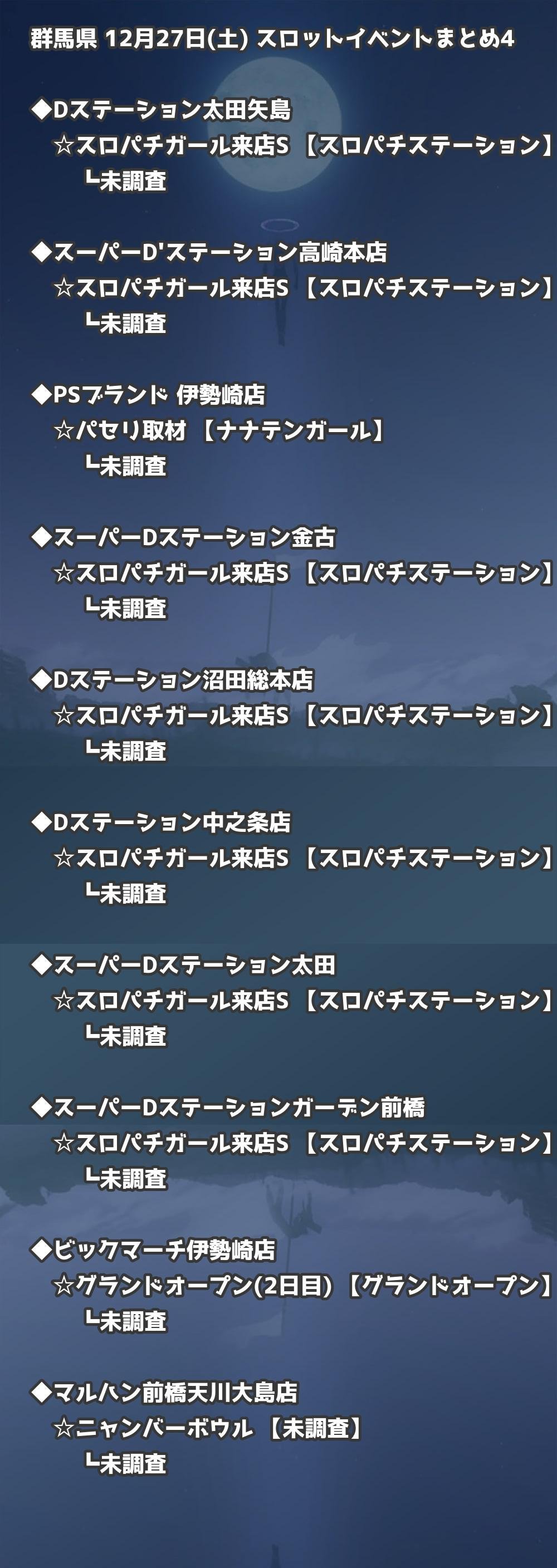 【群馬県】12月27日(土) パチンコホールイベント取材まとめ記事です。