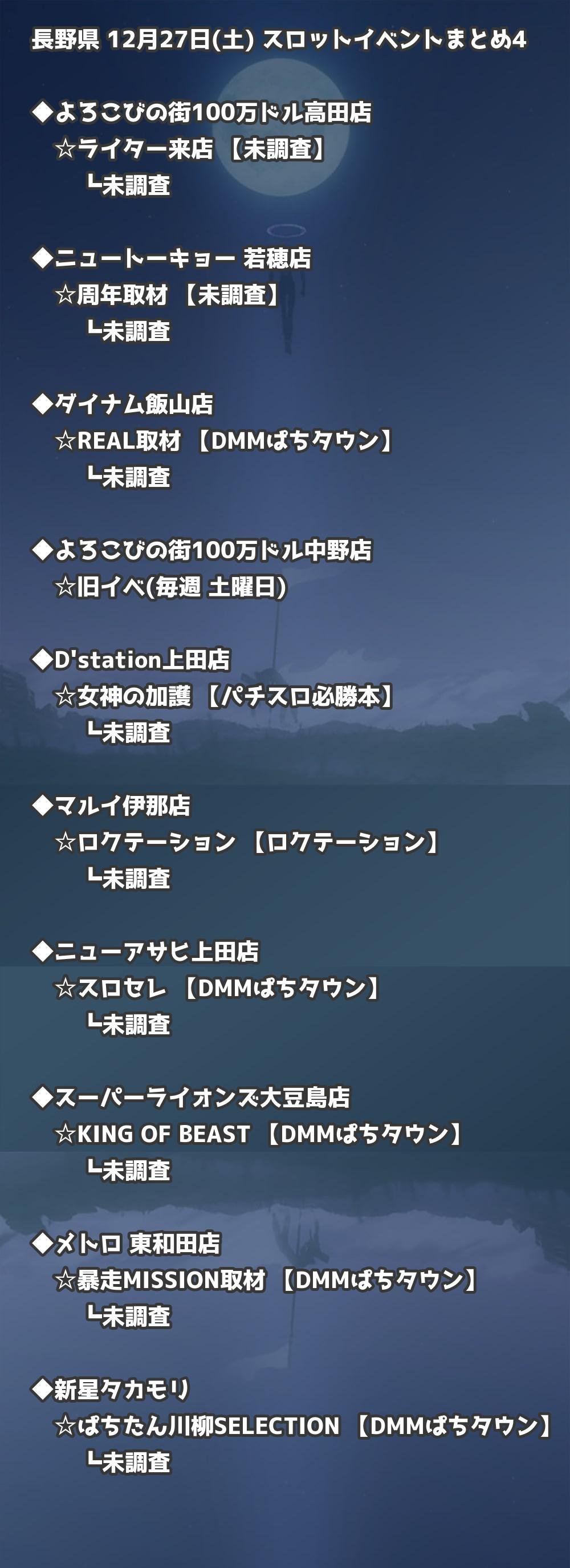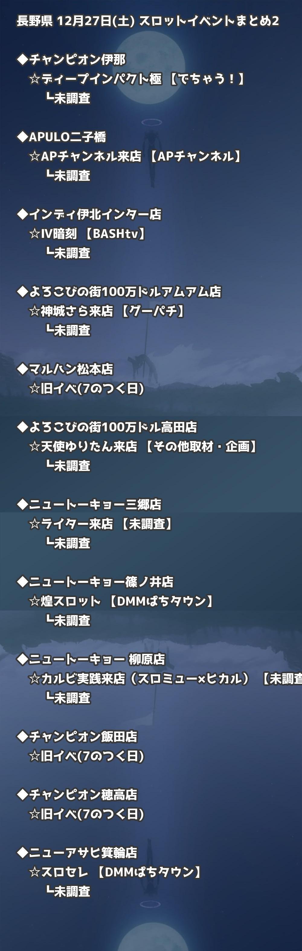 📊 長野県 12月27日(土) 勝てるパチンコ・スロット取材店舗一覧|おすすめ順