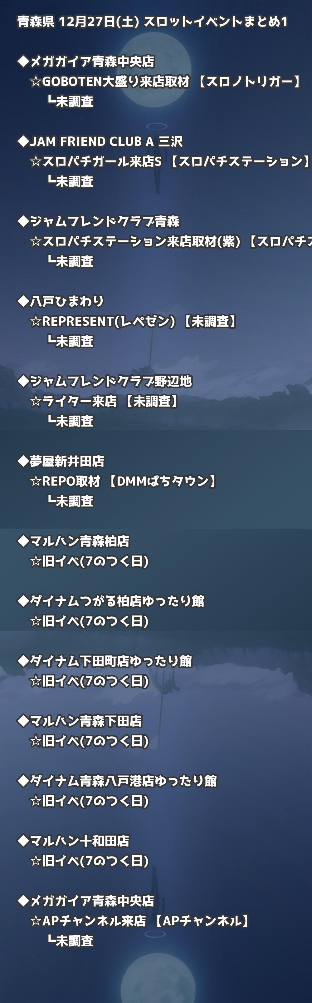 📊 青森県 12月27日(土) 勝てるパチンコ・スロット取材店舗一覧|おすすめ順