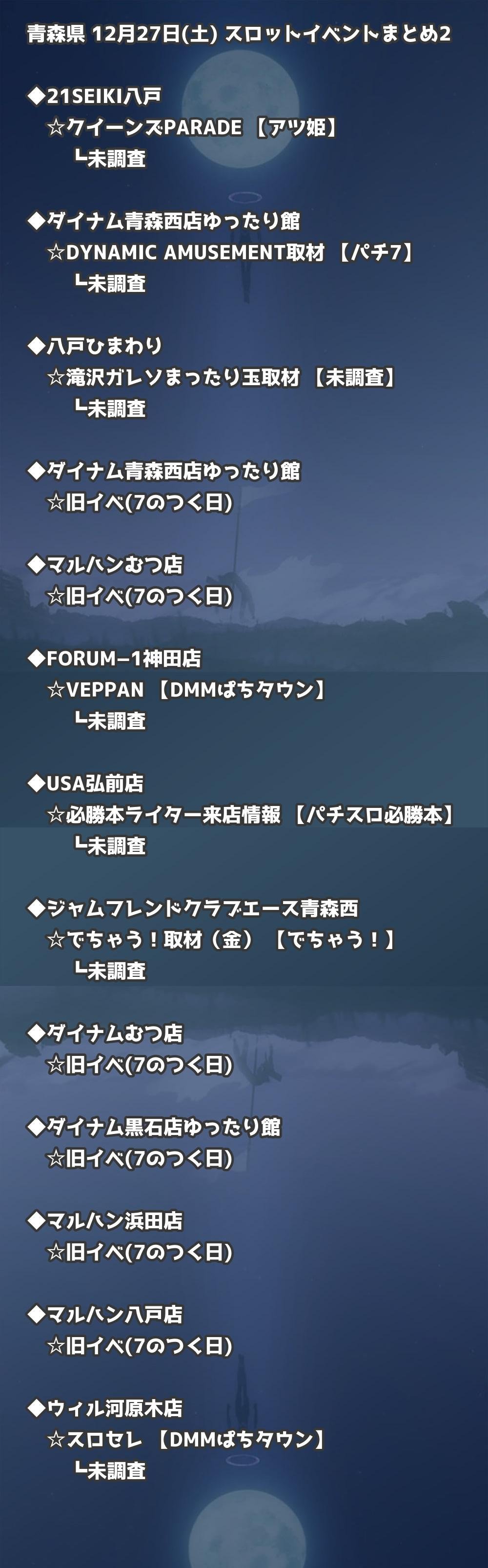 【青森県】12月27日(土) パチンコホールイベント取材まとめ記事です。
