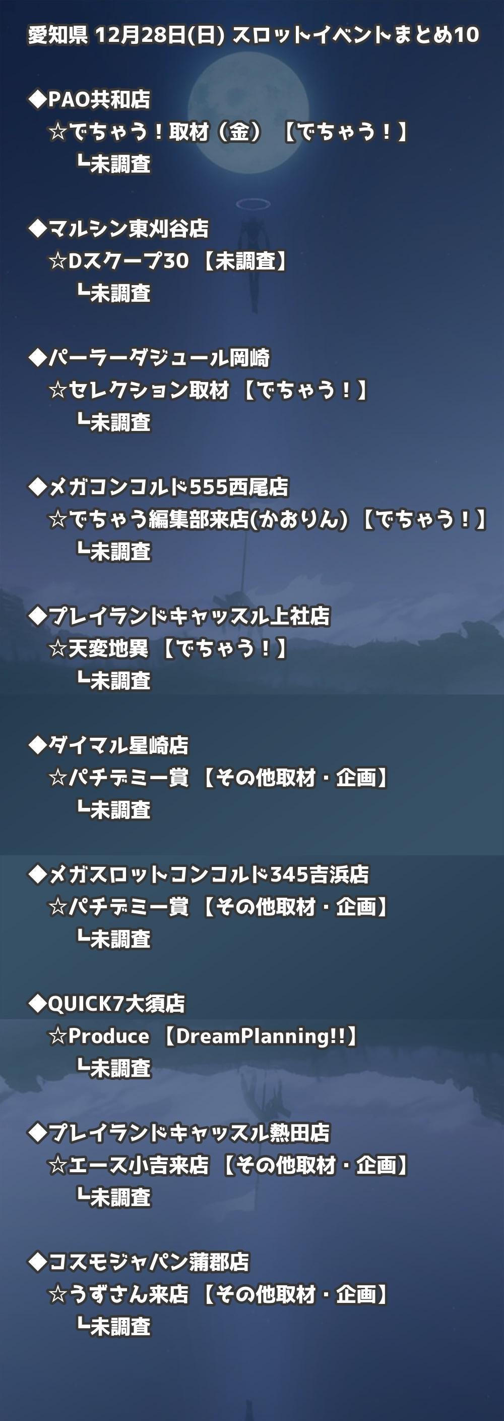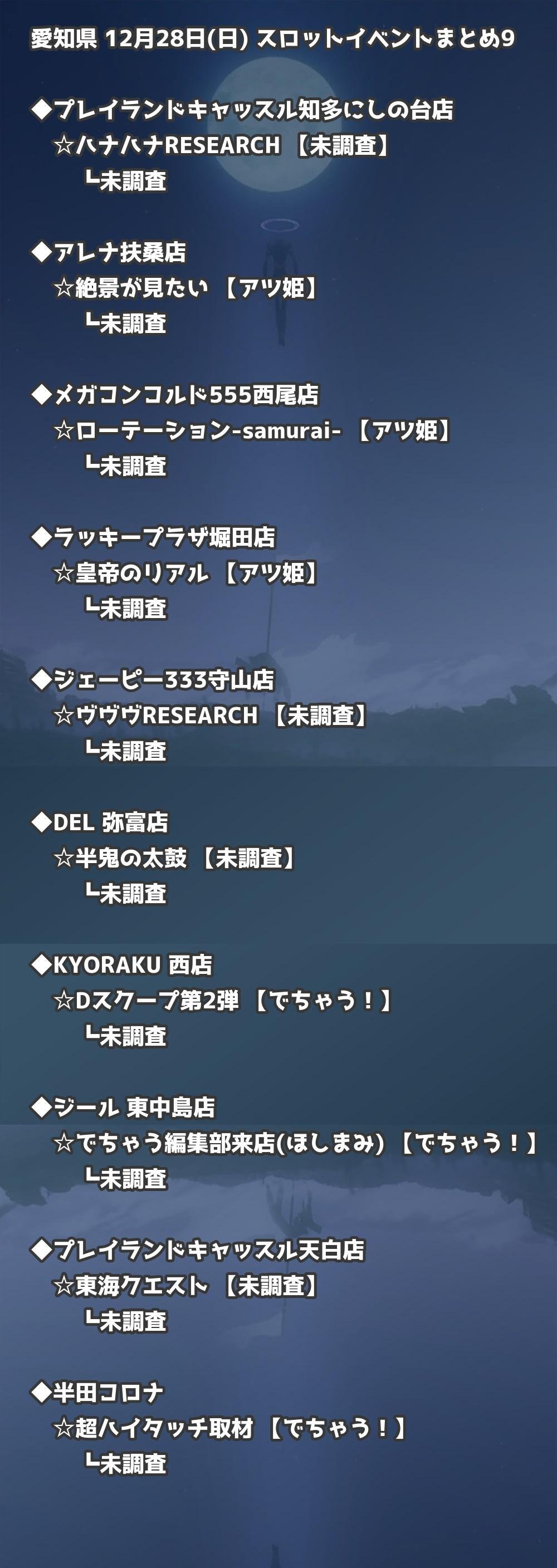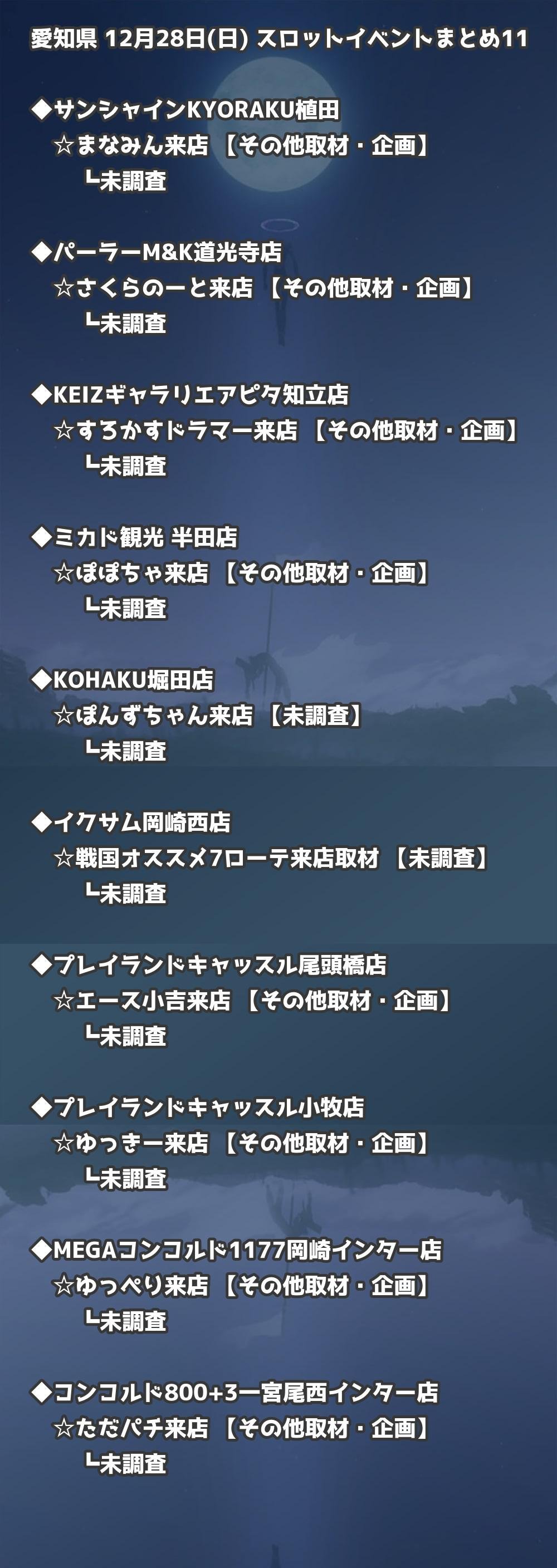 【愛知県】12月28日(日) パチンコホールイベント取材まとめ記事です。
