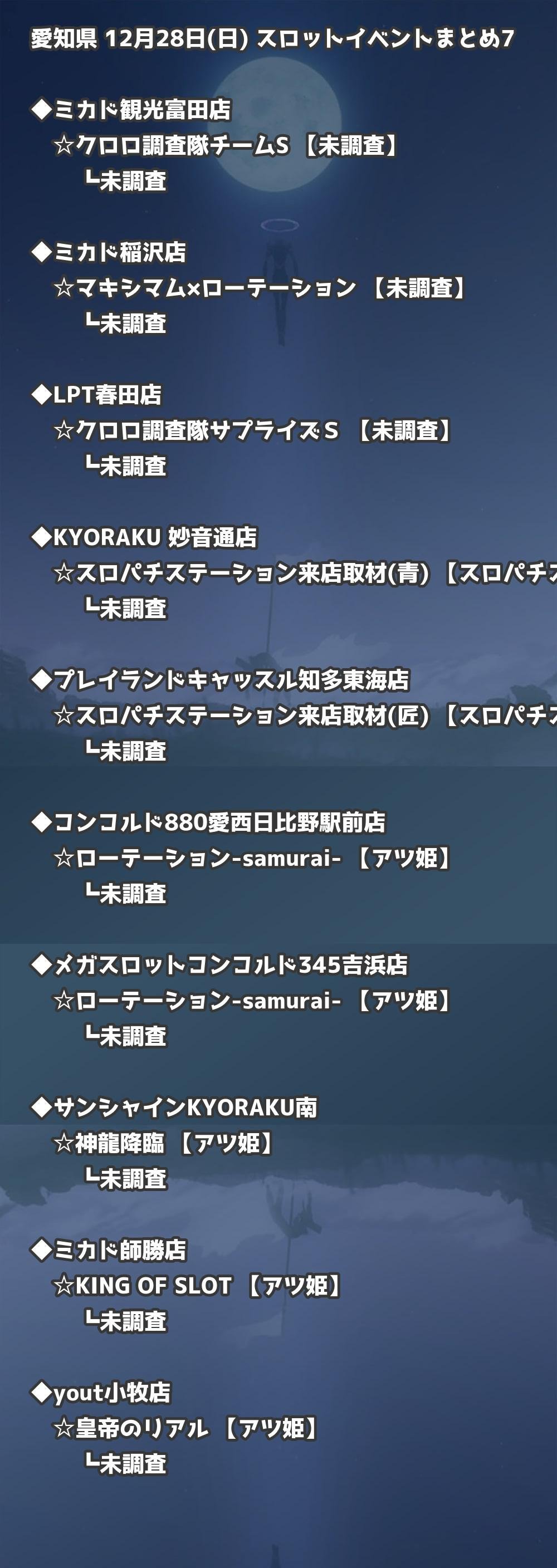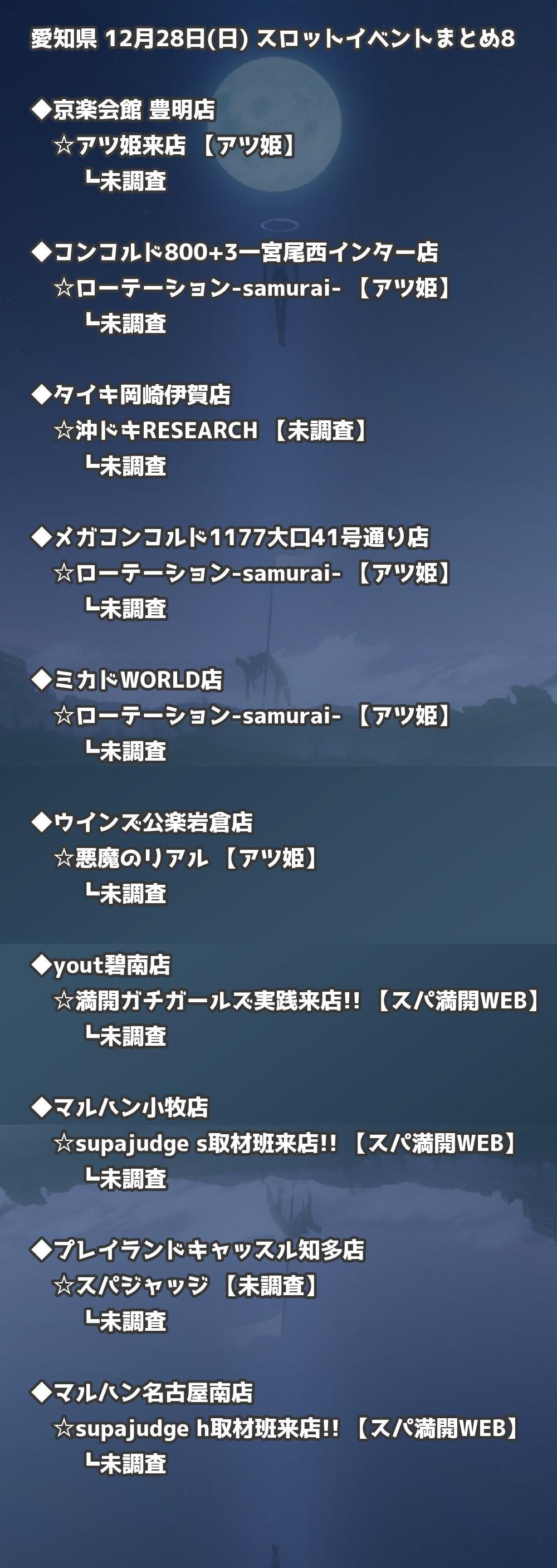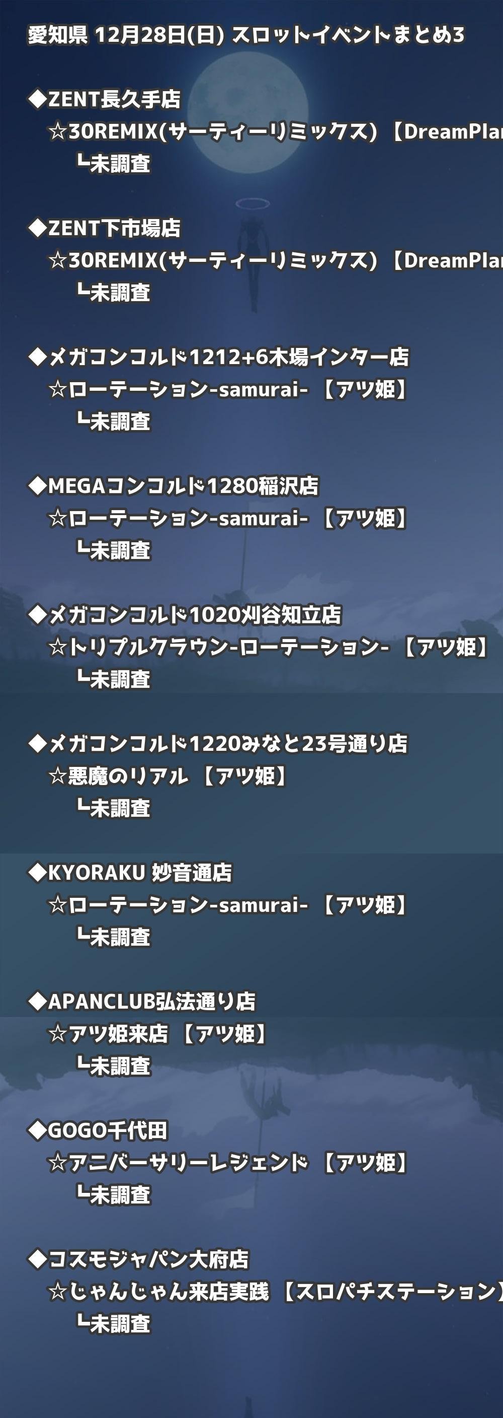 【愛知県】12月28日(日) パチンコホールイベント取材まとめ記事です。