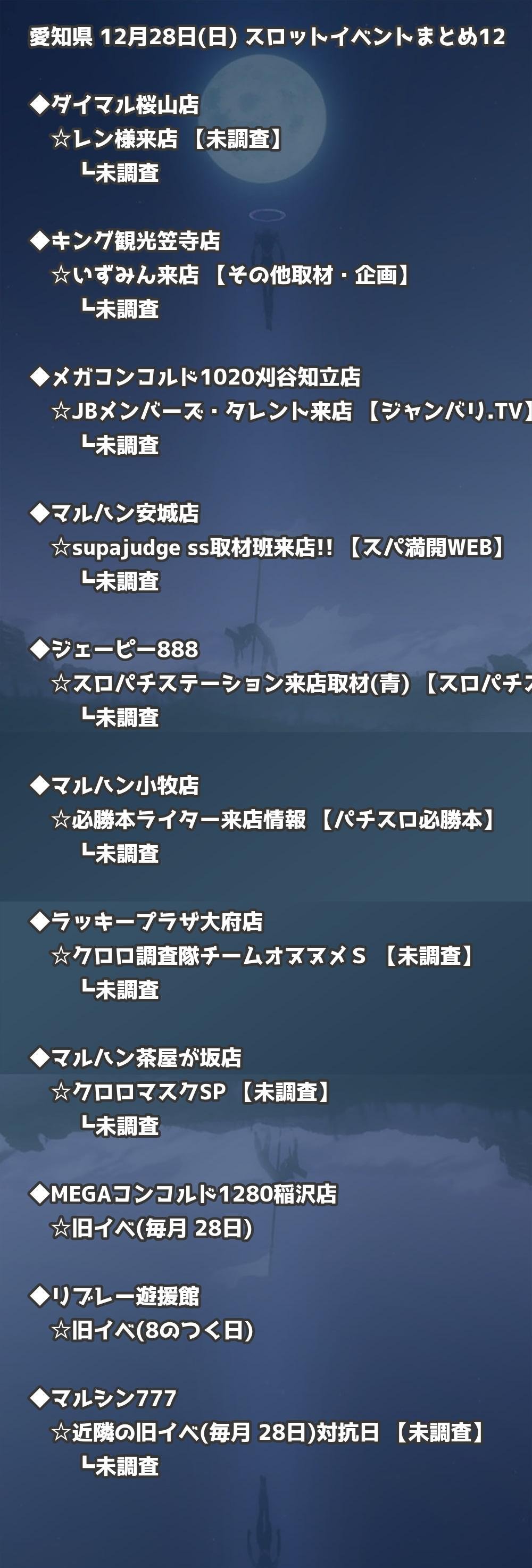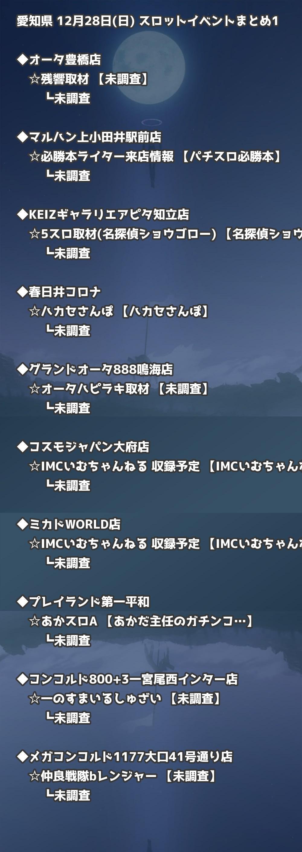 📊 愛知県 12月28日(日) 勝てるパチンコ・スロット取材店舗一覧|おすすめ順