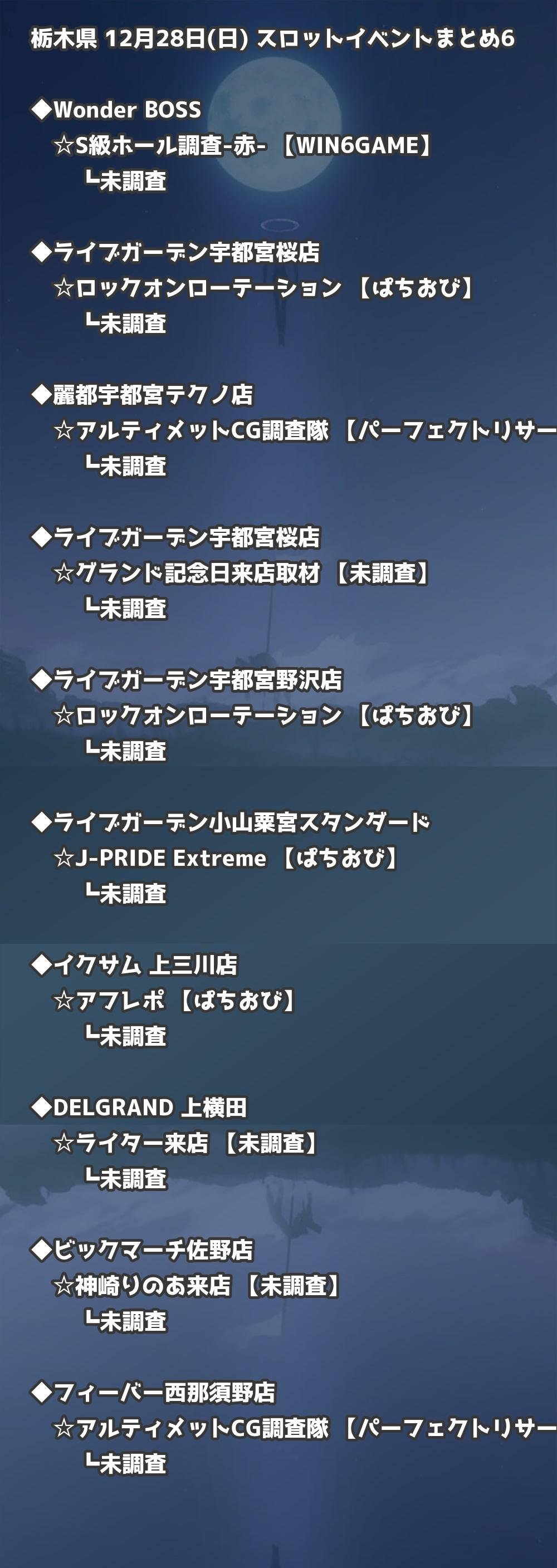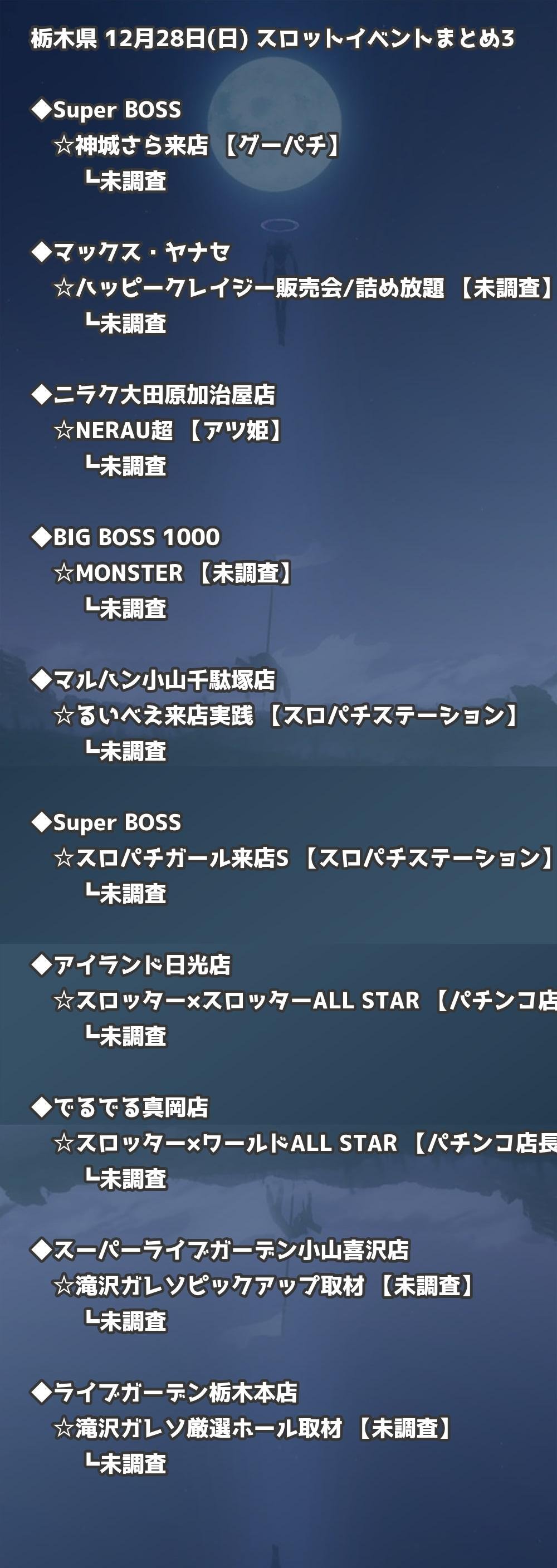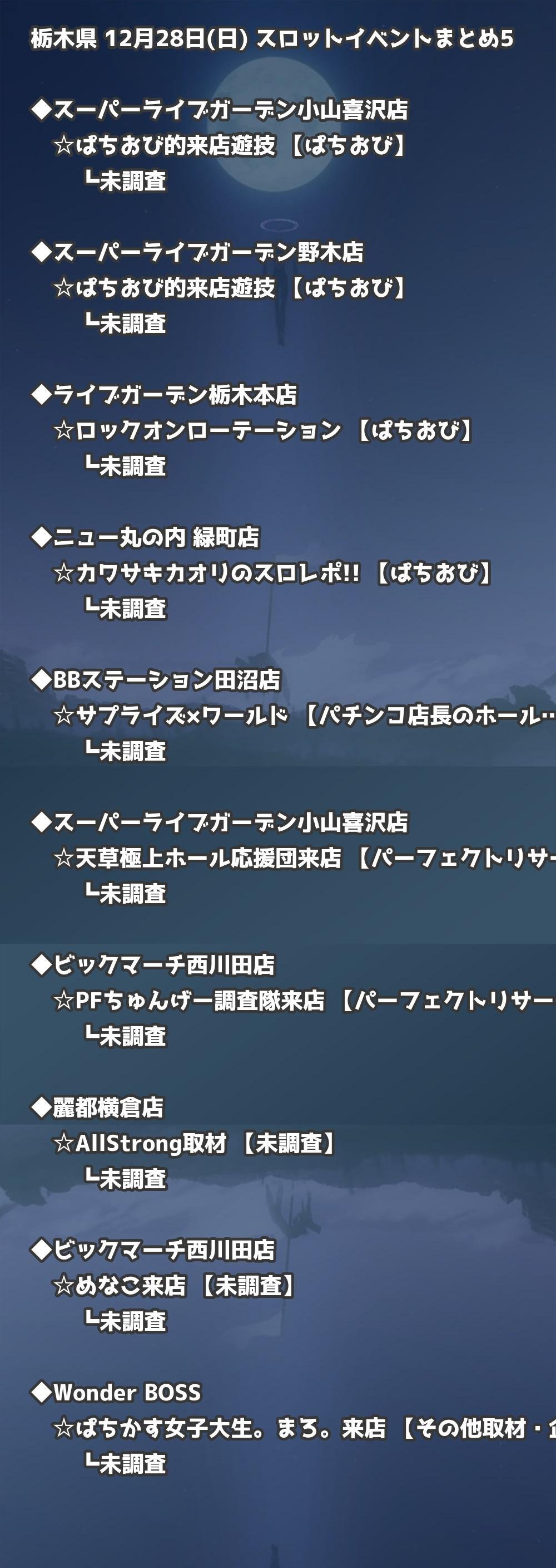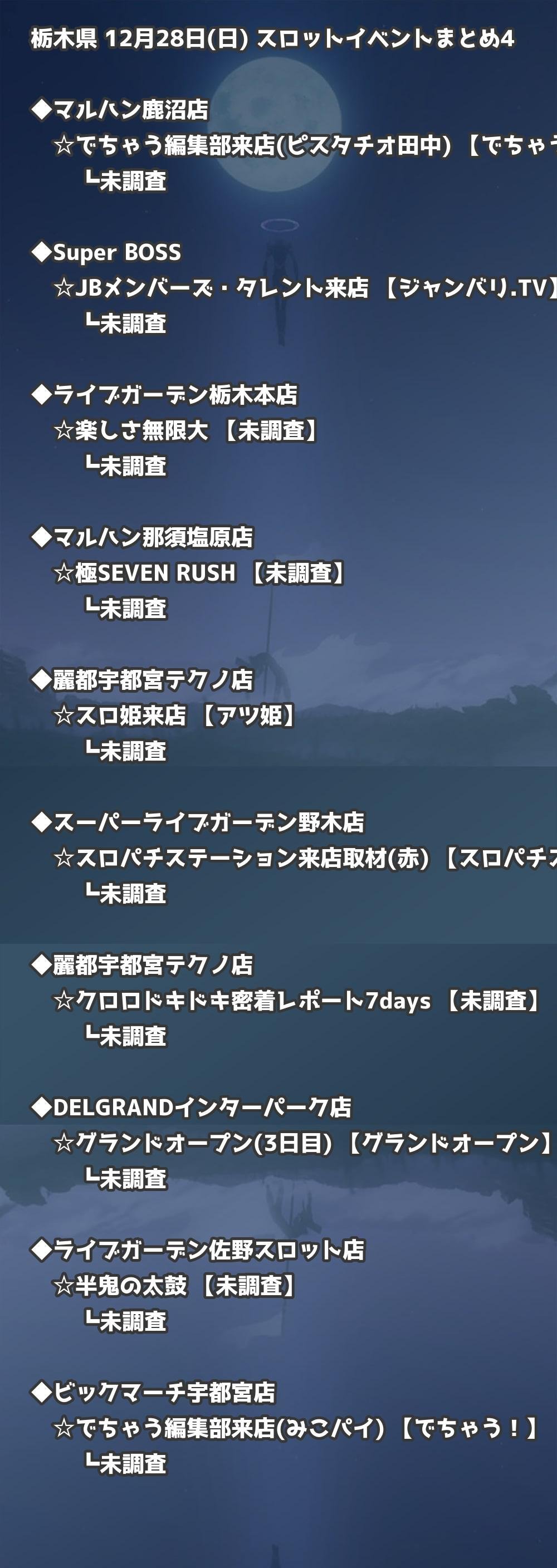 【栃木県】12月28日(日) パチンコホールイベント取材まとめ記事です。