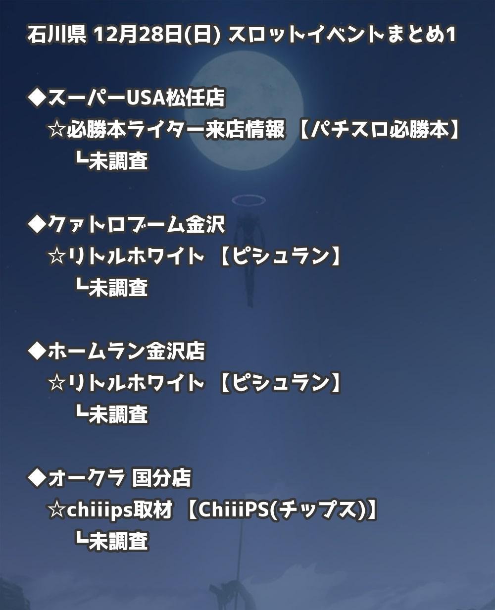 【石川県】12月28日(日) パチンコホールイベント取材まとめ記事です。