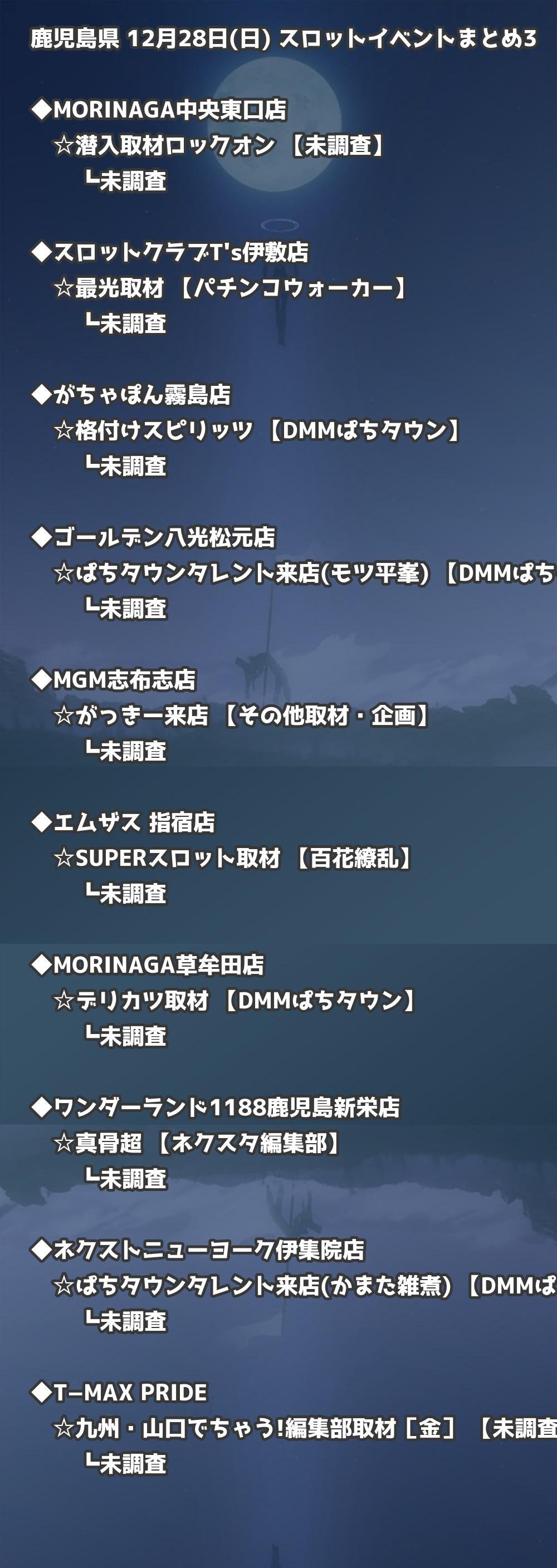 📊 鹿児島県 12月28日(日) 勝てるパチンコ・スロット取材店舗一覧|おすすめ順