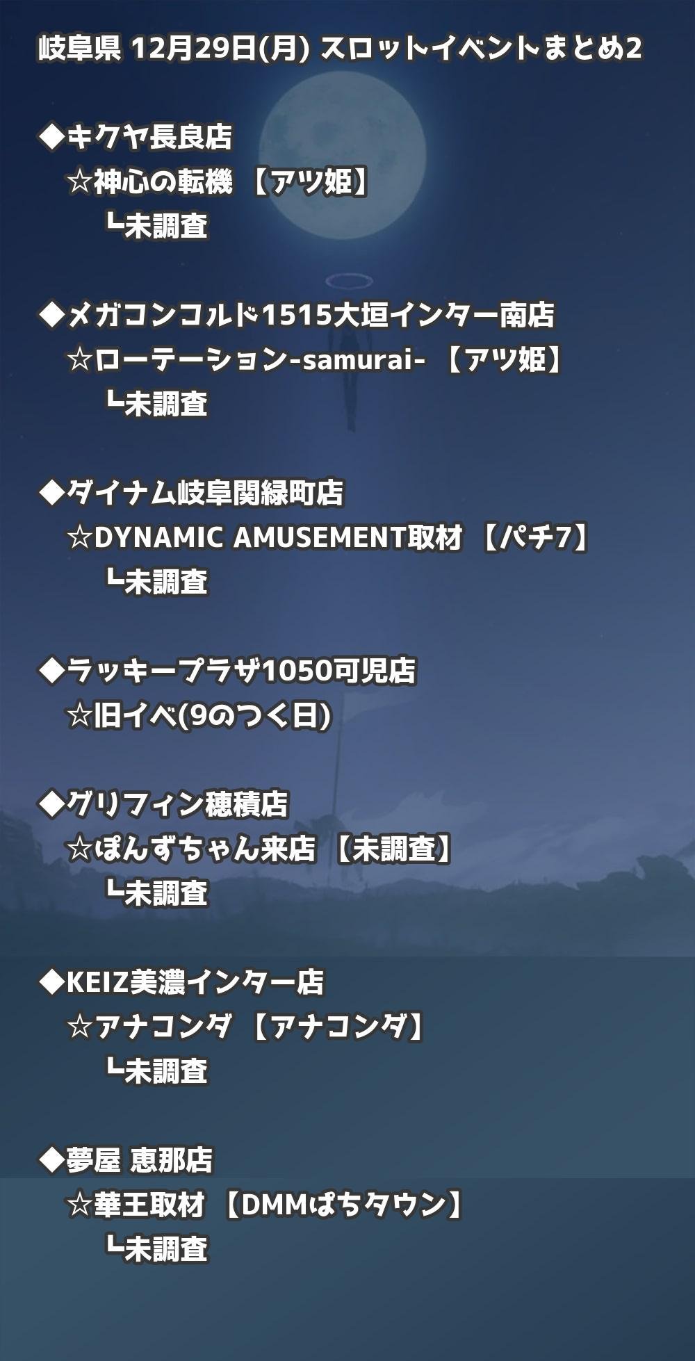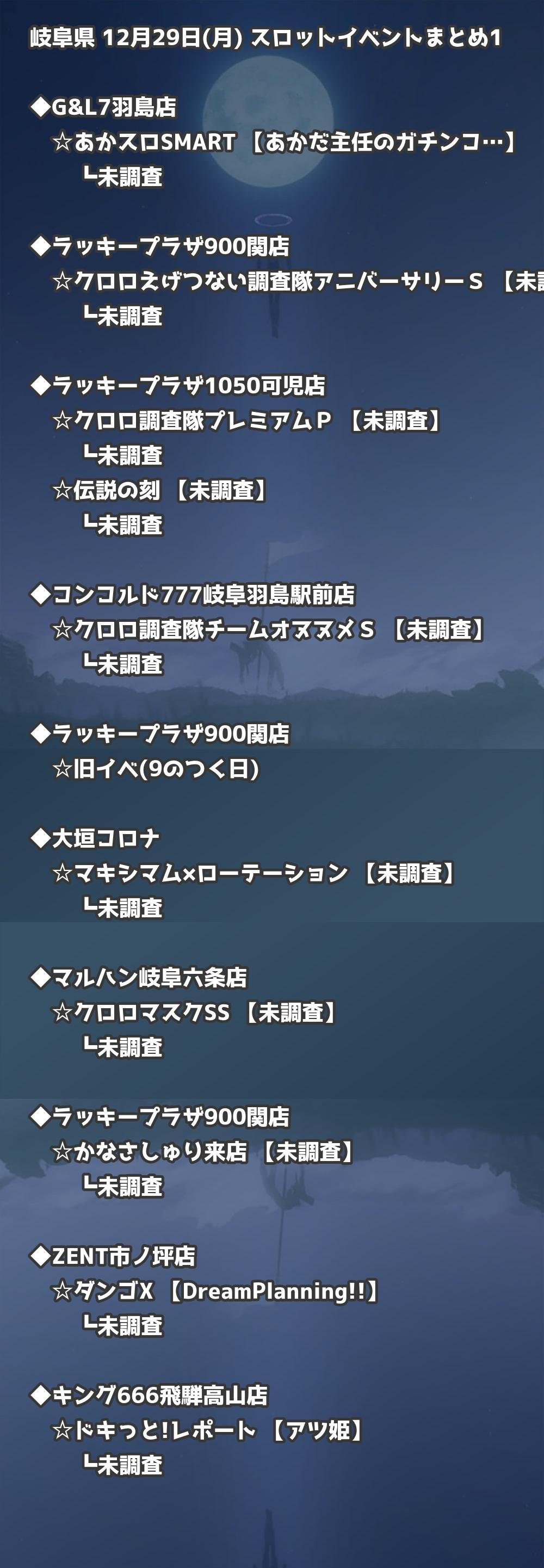 📊 岐阜県 12月29日(月) 勝てるパチンコ・スロット取材店舗一覧|おすすめ順