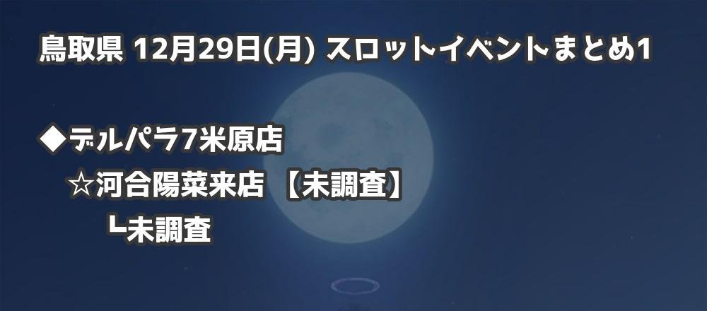 【鳥取県】12月29日(月) パチンコホールイベント取材まとめ記事です。