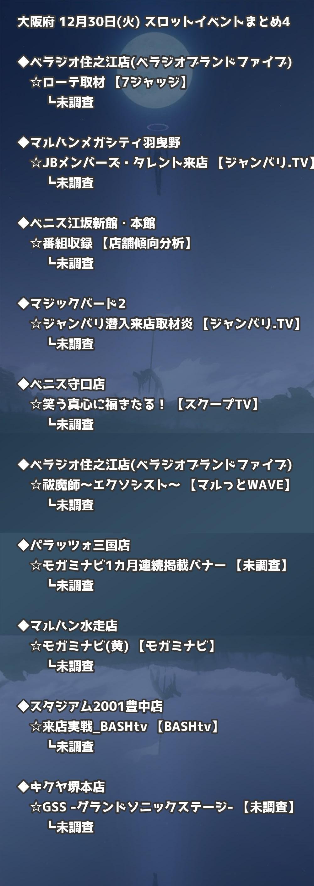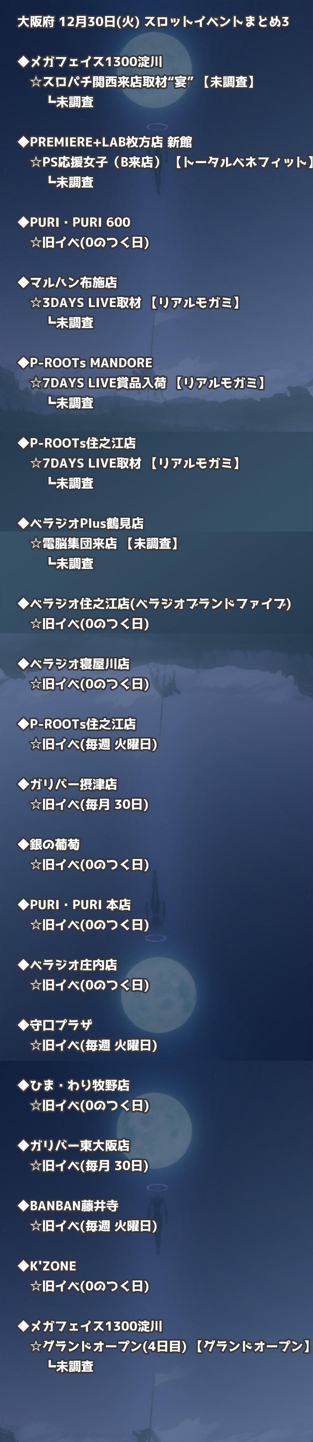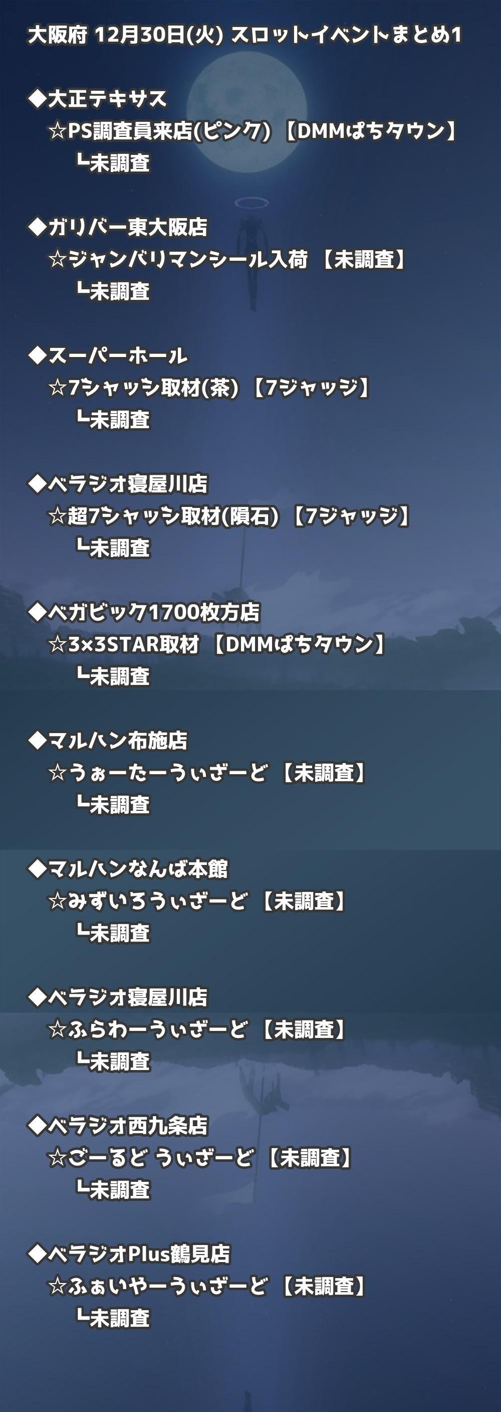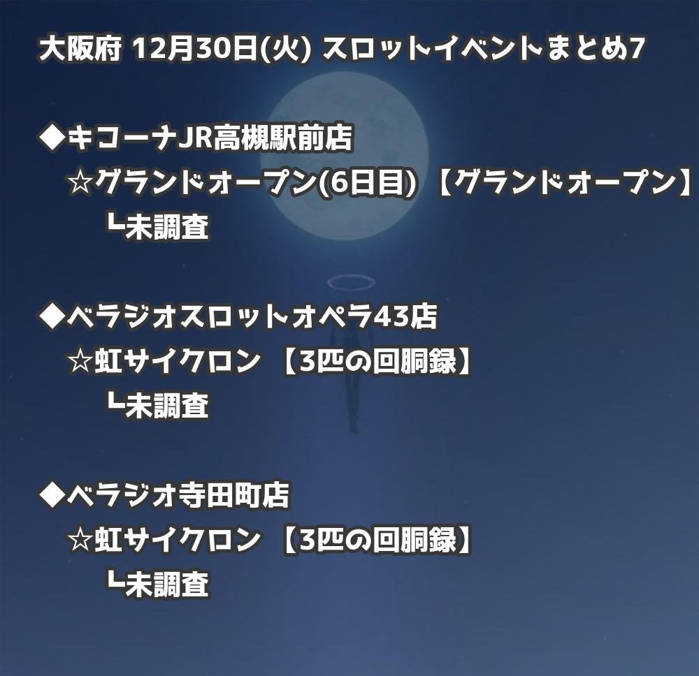 【大阪府】12月30日(火) パチンコホールイベント取材まとめ記事です。
